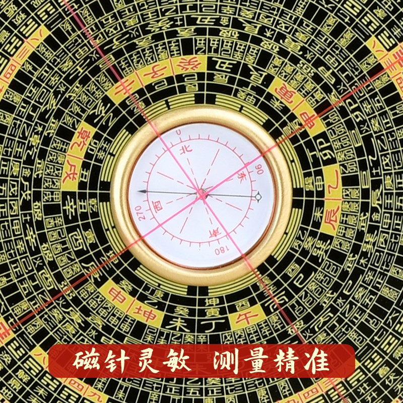 罗盘专业高精度纯黄铜综合三元高级三合盘指南针八卦阵罗经仪摆件