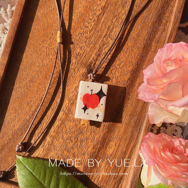 苹果之书 手作黏土项链原创风格饰品石塑粘土可爱秋冬毛衣链