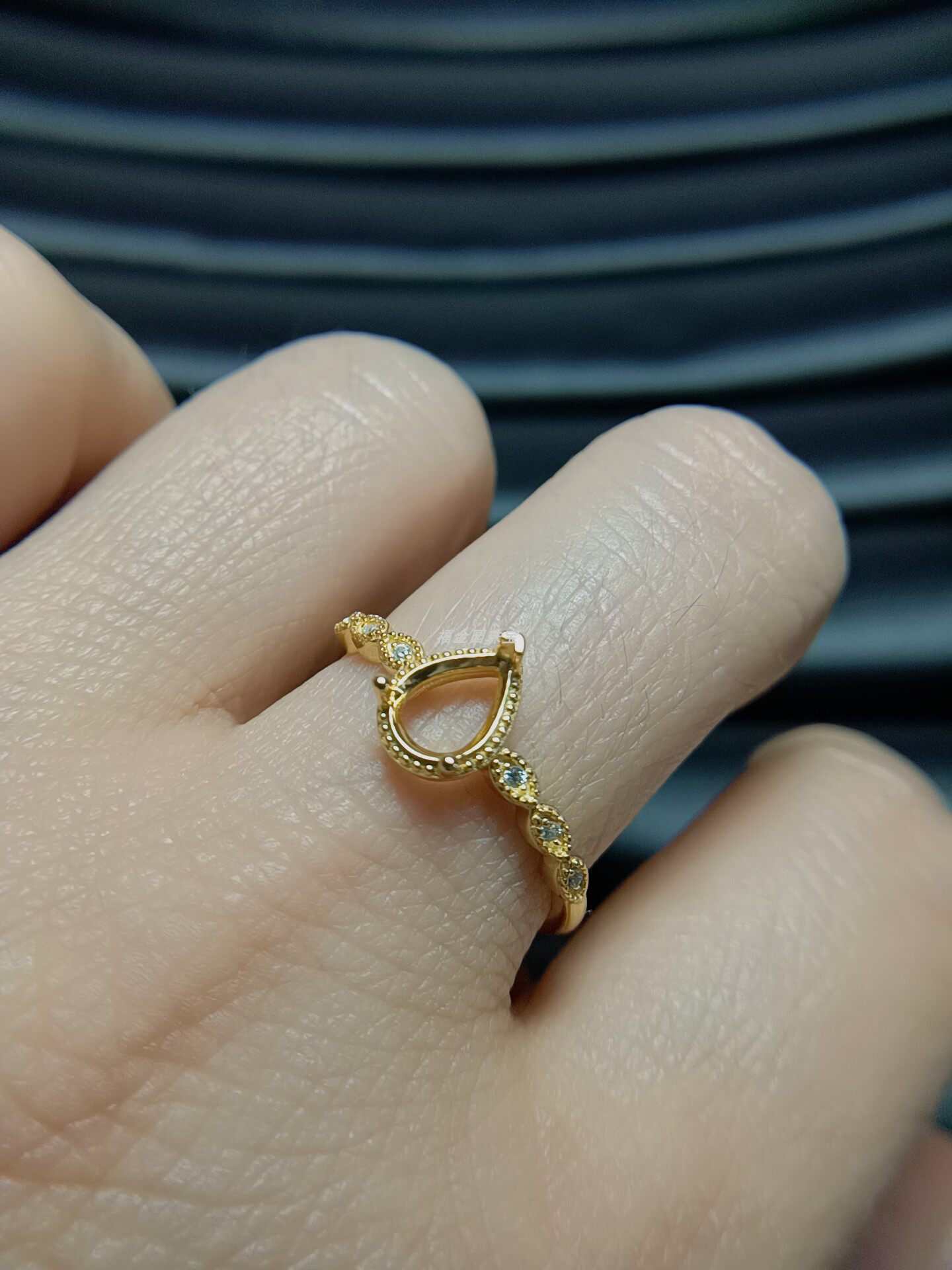 简约S925银戒指 空托水滴5*6mm 镀白金黄金色 开口可调节