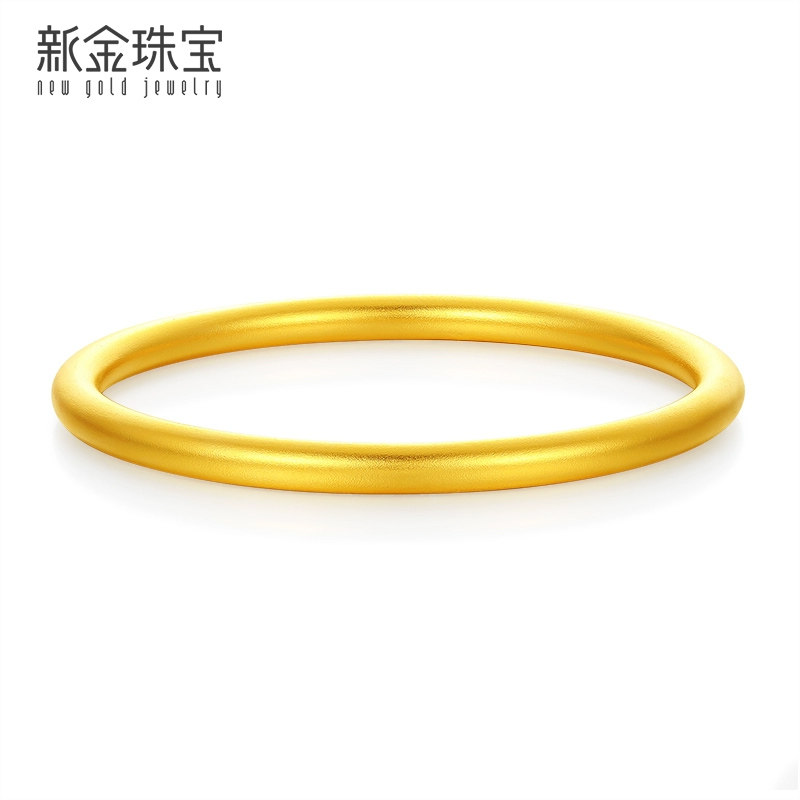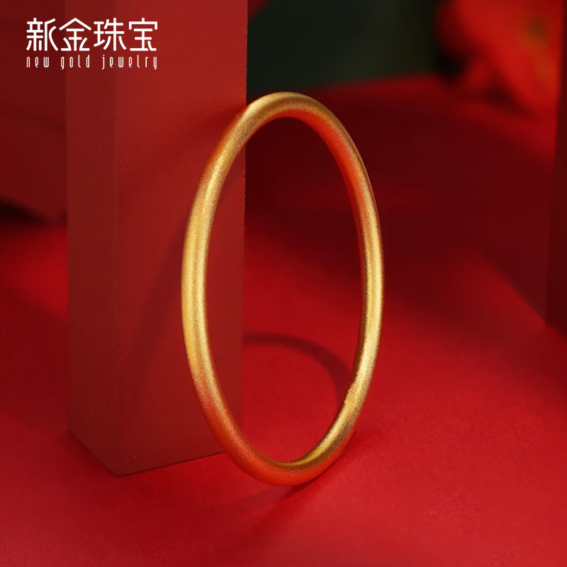 新金珠宝黄金手镯女款足古法足金999素圈纯金镯子结婚七夕送女友