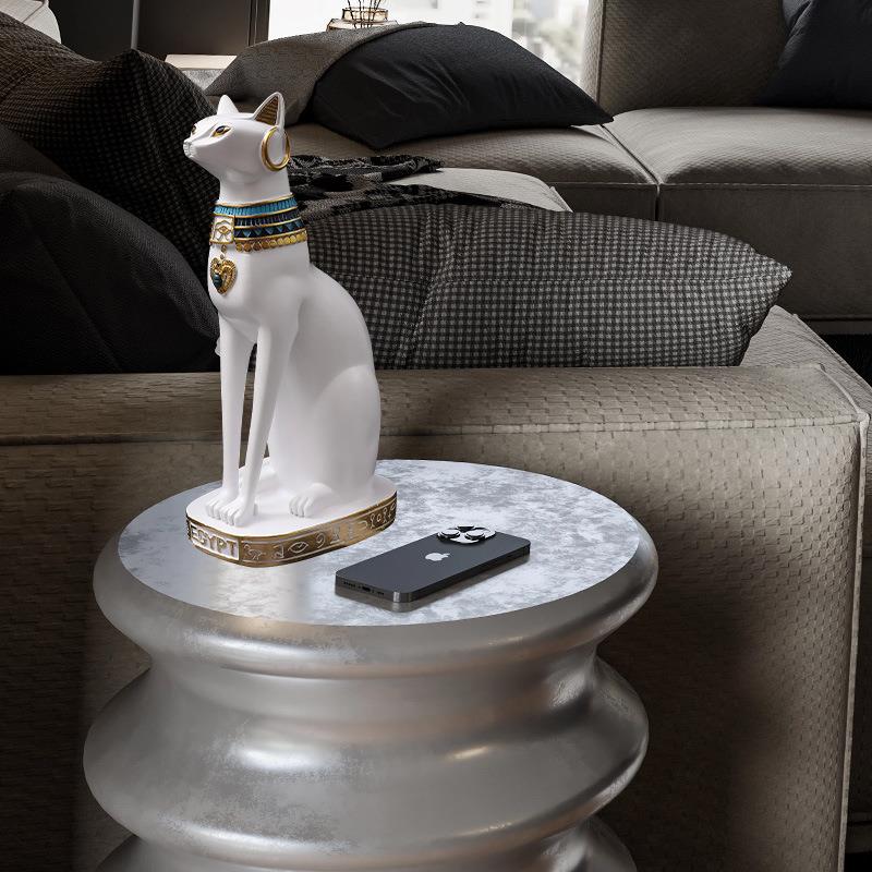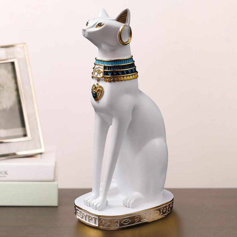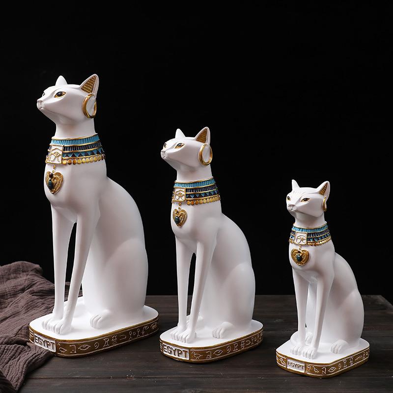入门玄关摆件飘窗摆件装饰埃及猫白色复古创意树脂摆件时尚客厅玄