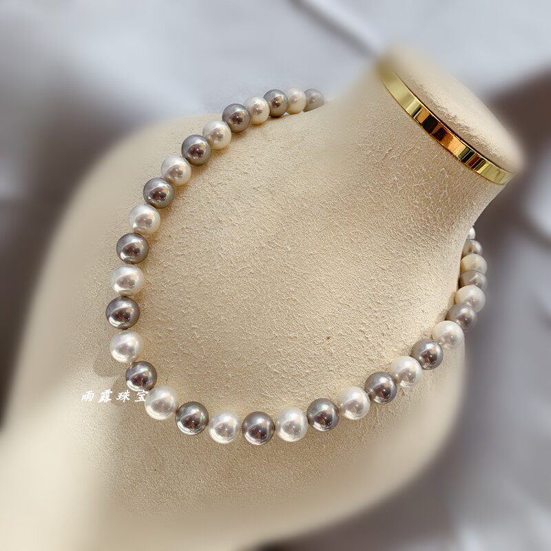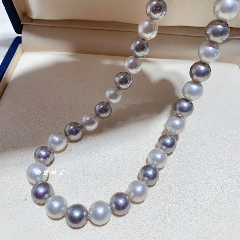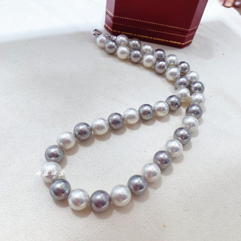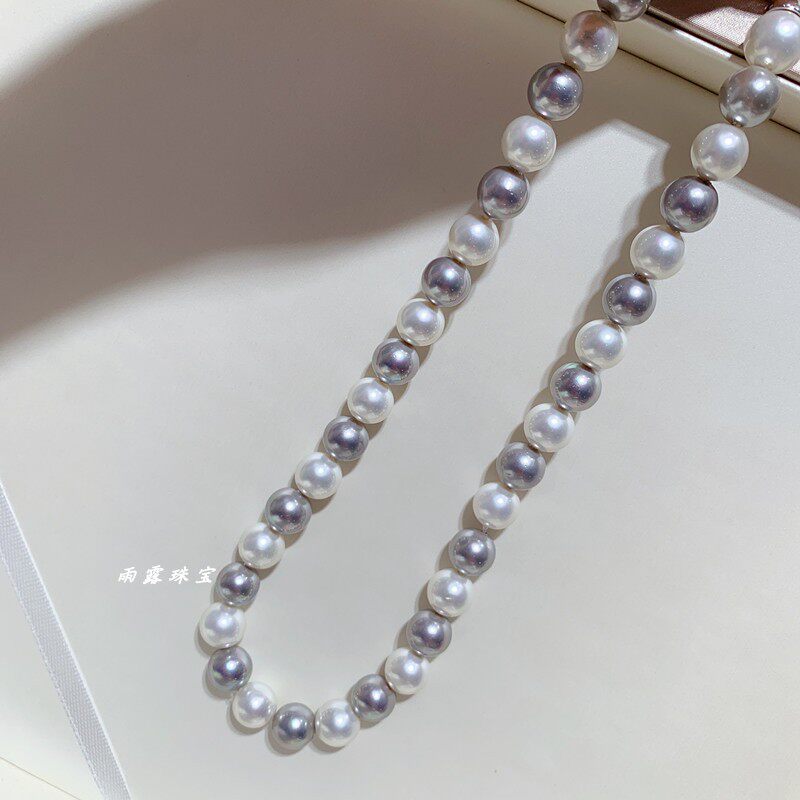 南洋母贝仿海水珍珠正圆强光灰白色炫彩锁骨项链经典日韩显气质女