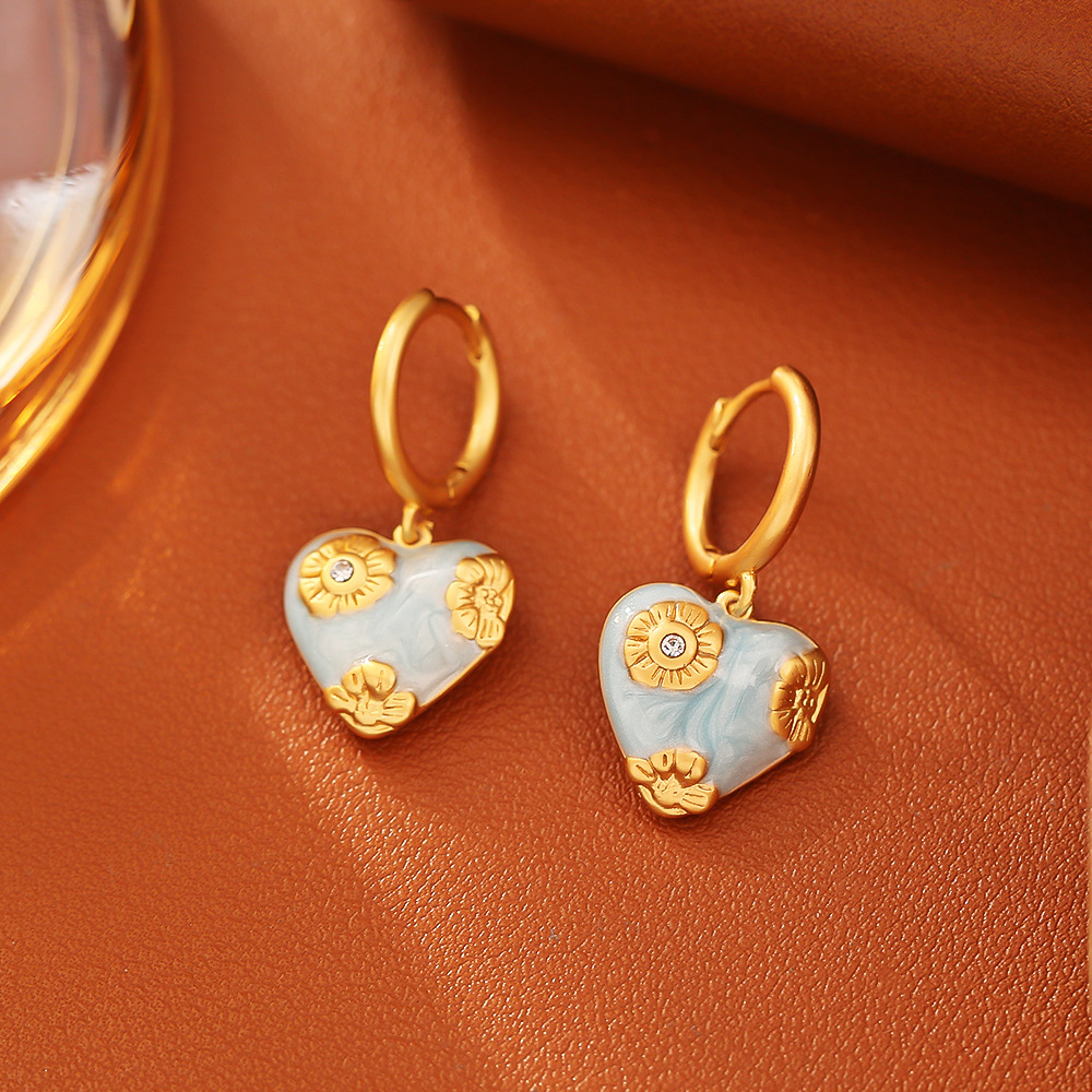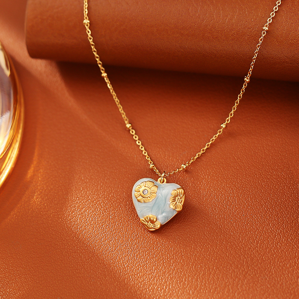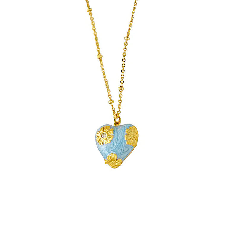 跨境珐琅滴油花朵吊坠项链油画风高级感锁骨链爱心红色蓝色耳环