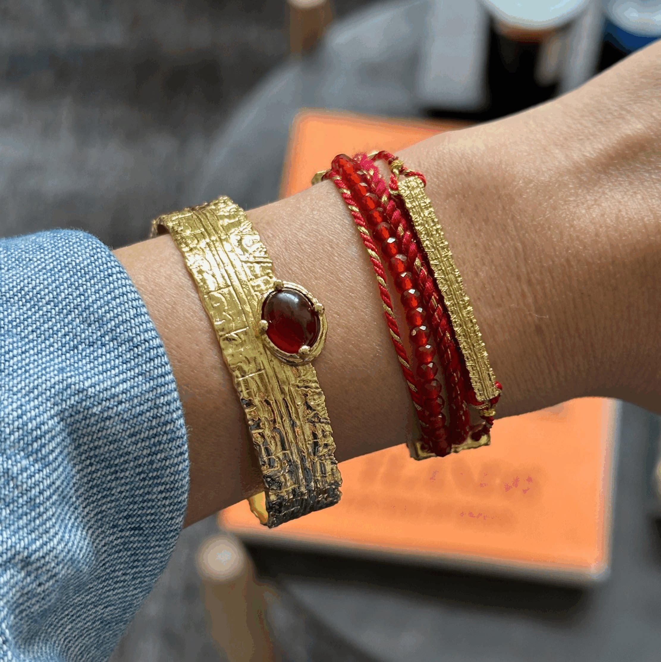 【礼物】Wens 红玛瑙多层手链手绳女原创设计小众叠戴红色手链