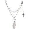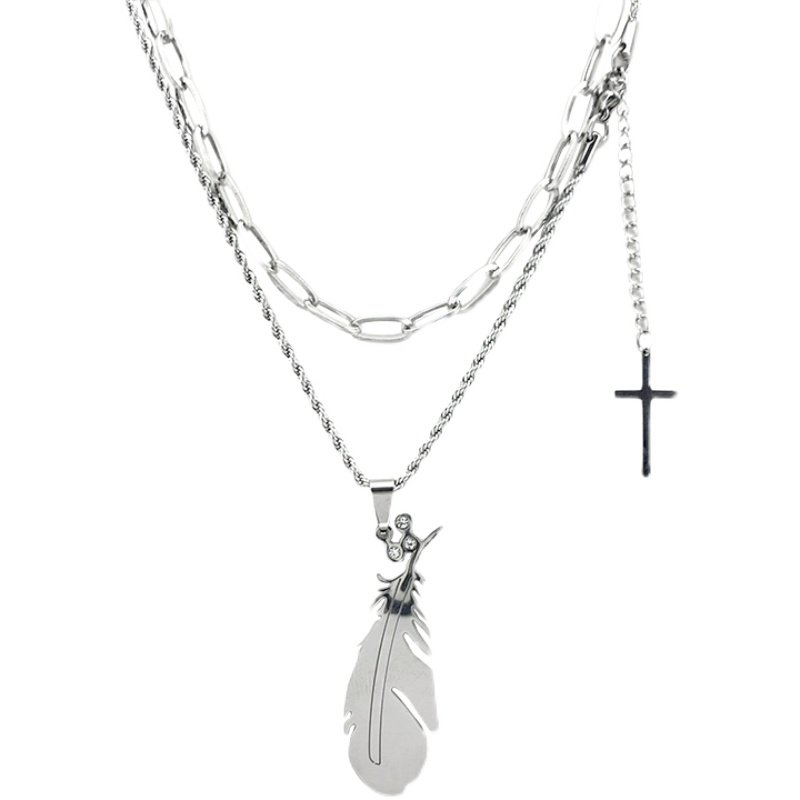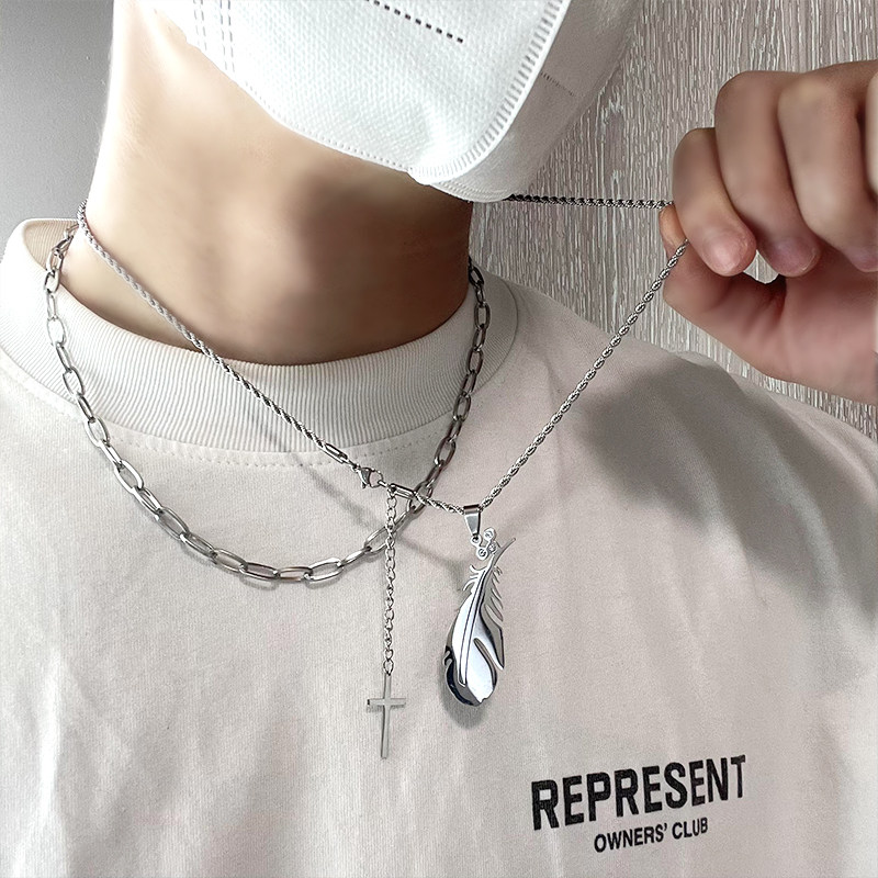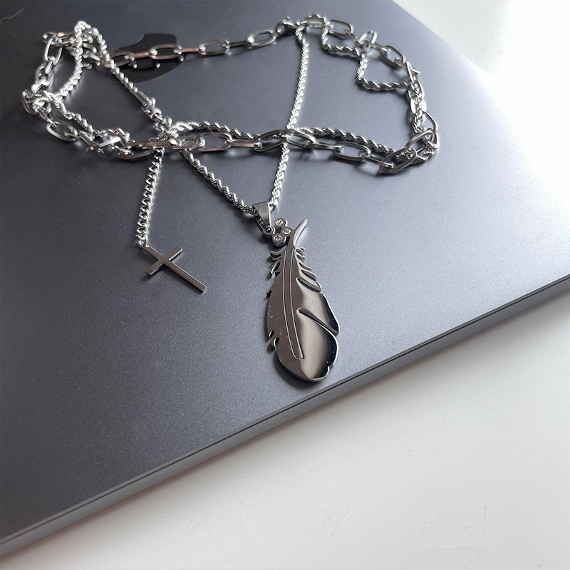 原创欧美ins小众设计羽毛吊坠钛钢双层项链嘻哈男百搭轻奢高街女