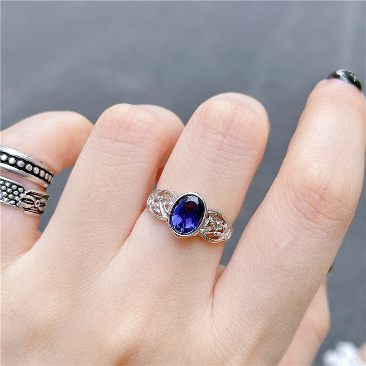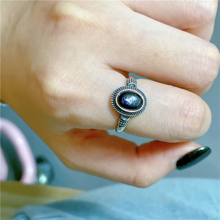 ninisn 925银天然彩宝戒指星辰大海星光堇青石双色石橙色碧玺彩贝