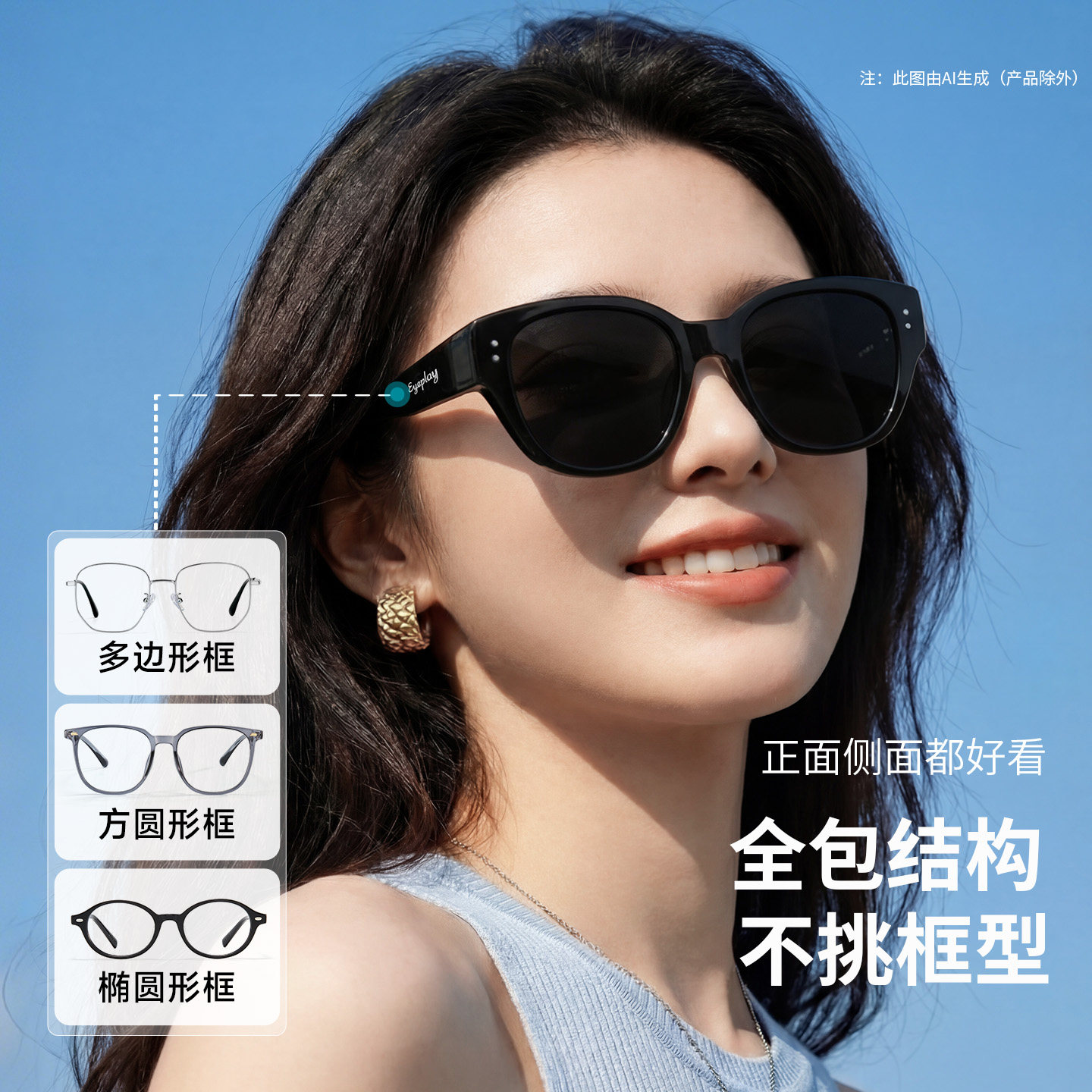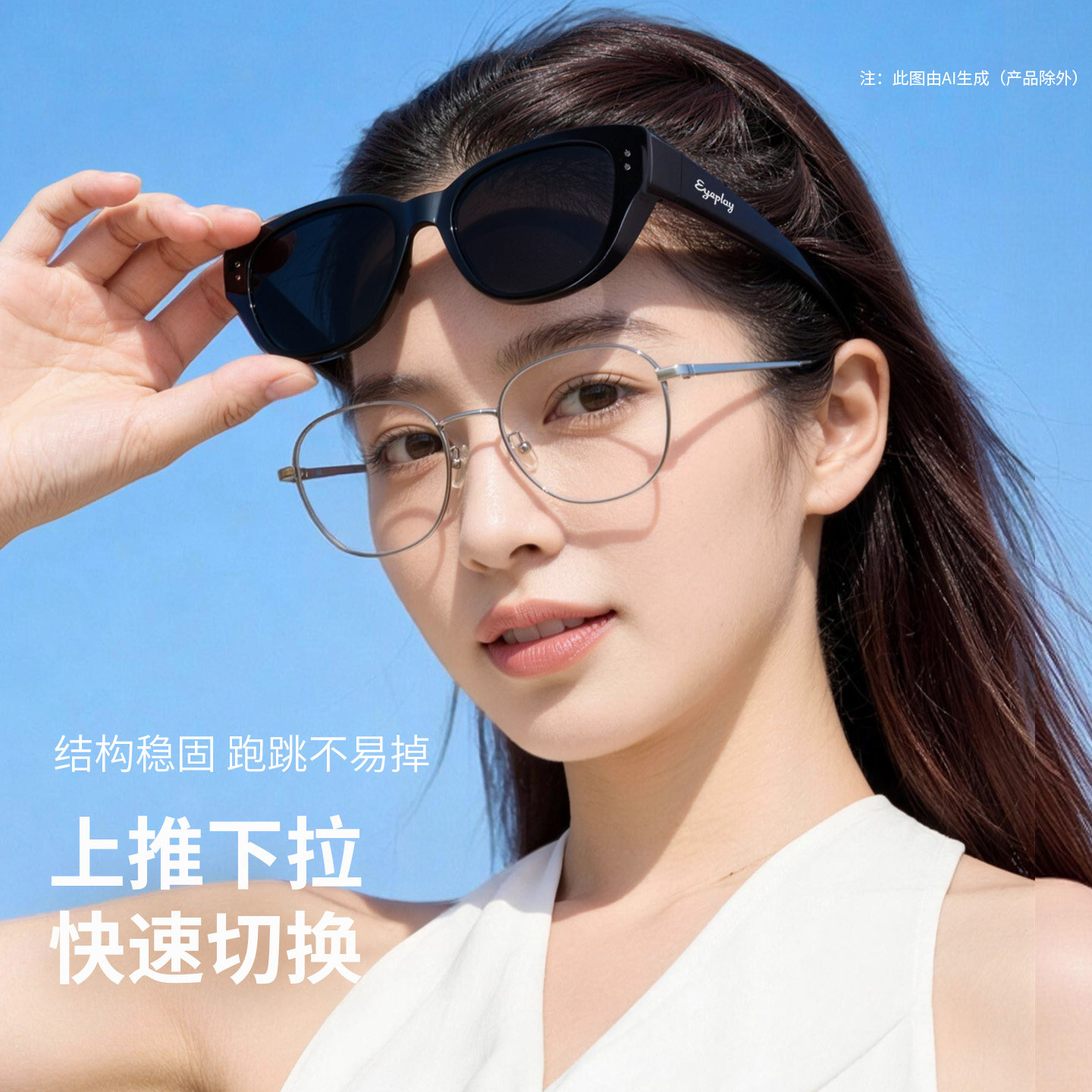 目戏猫眼太阳镜可套近视眼镜防紫外线护目偏光墨镜套镜女款31027