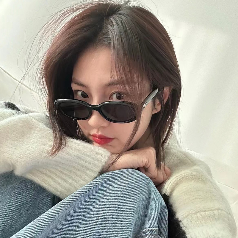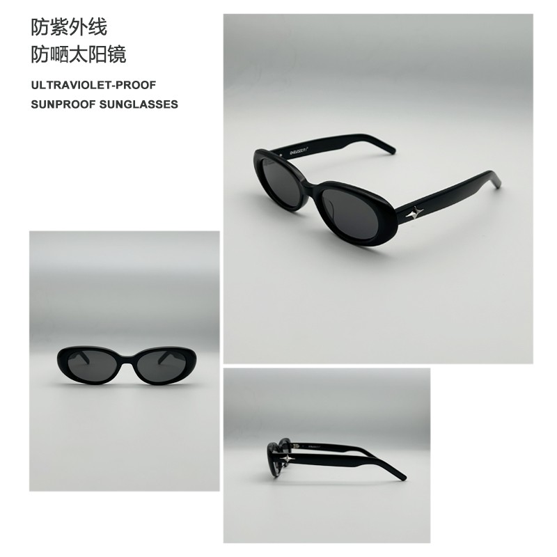 珍妮同款GM墨镜女黑色小框椭圆形复古法式风板材太阳镜男防紫外线