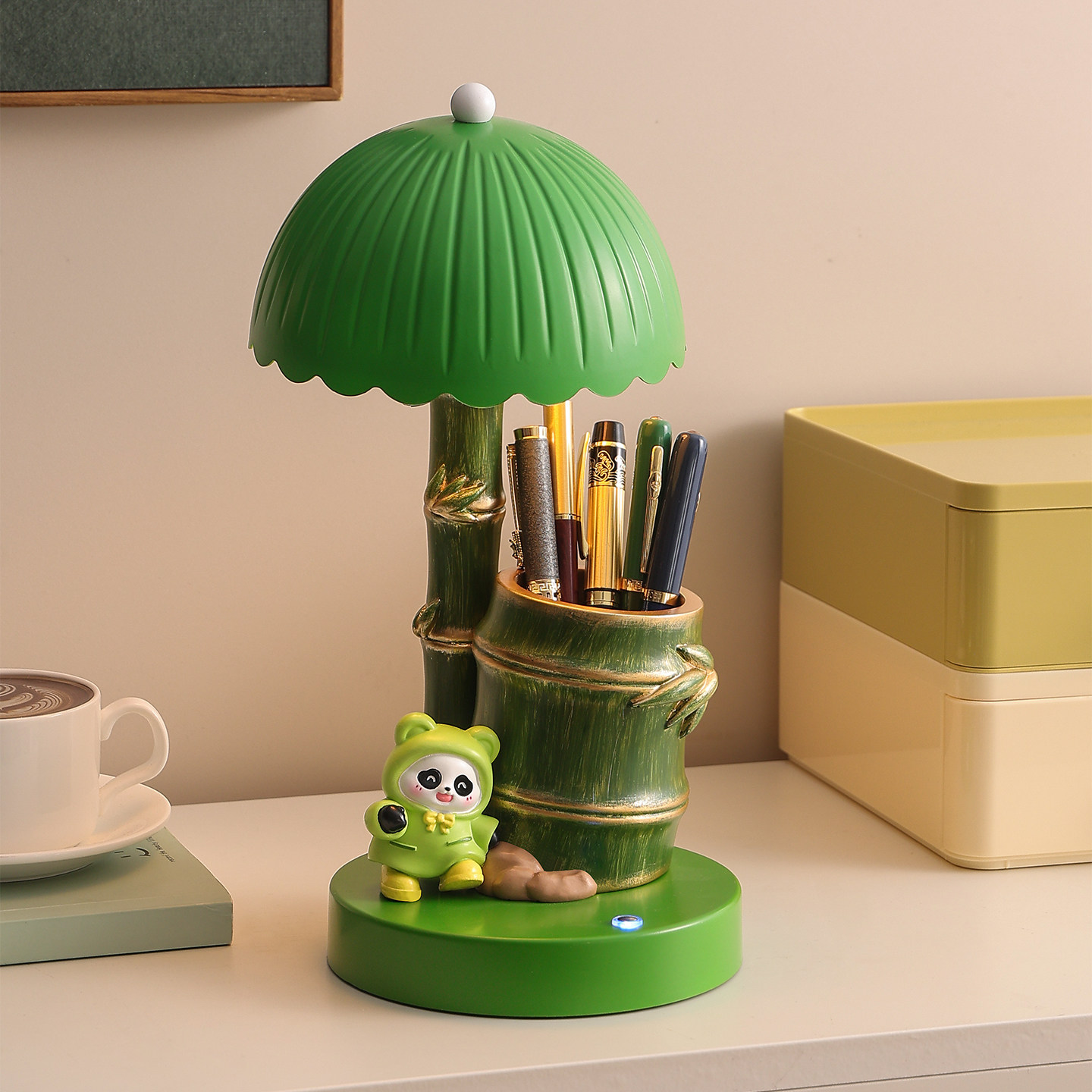 可爱熊猫台灯笔筒摆件胸有成竹书桌卧室小夜灯氛围感装饰生日礼物