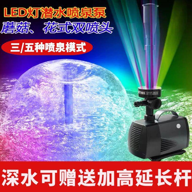 全套蘑菇喷泉水泵彩灯喷头循环增氧泵小型假山鱼池水池造景小喷泉
