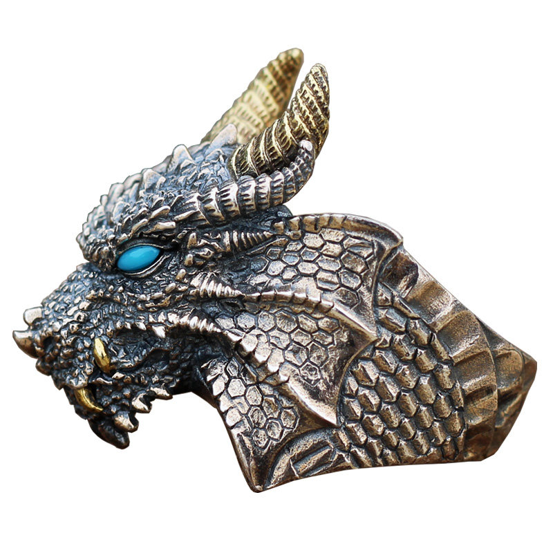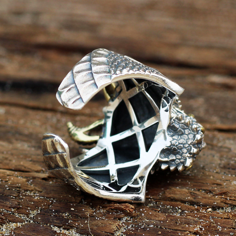 手工应龙戒指男S925纯银镶嵌松石南红霸气国风复古活口食指戒卓耿