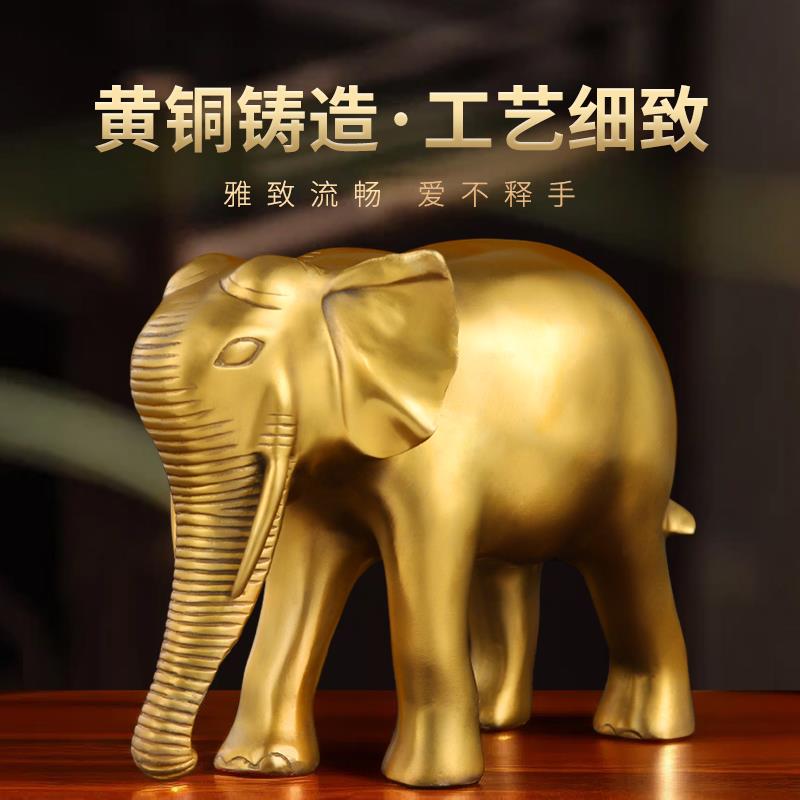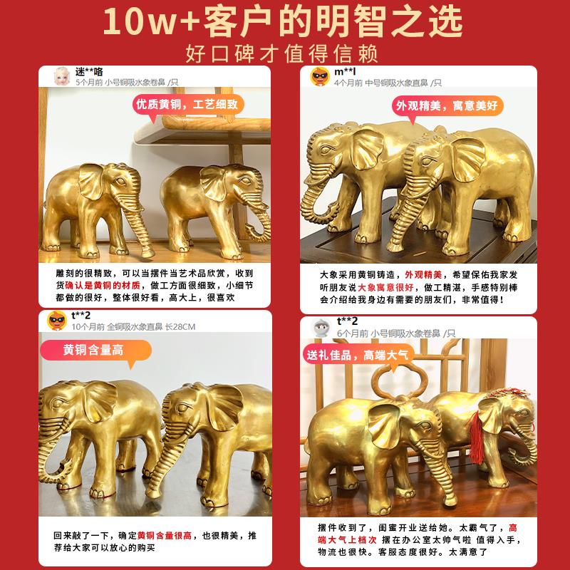 铜象吸水象客厅纯黄铜大象摆件一对家居酒柜玄关办公室装饰工艺品