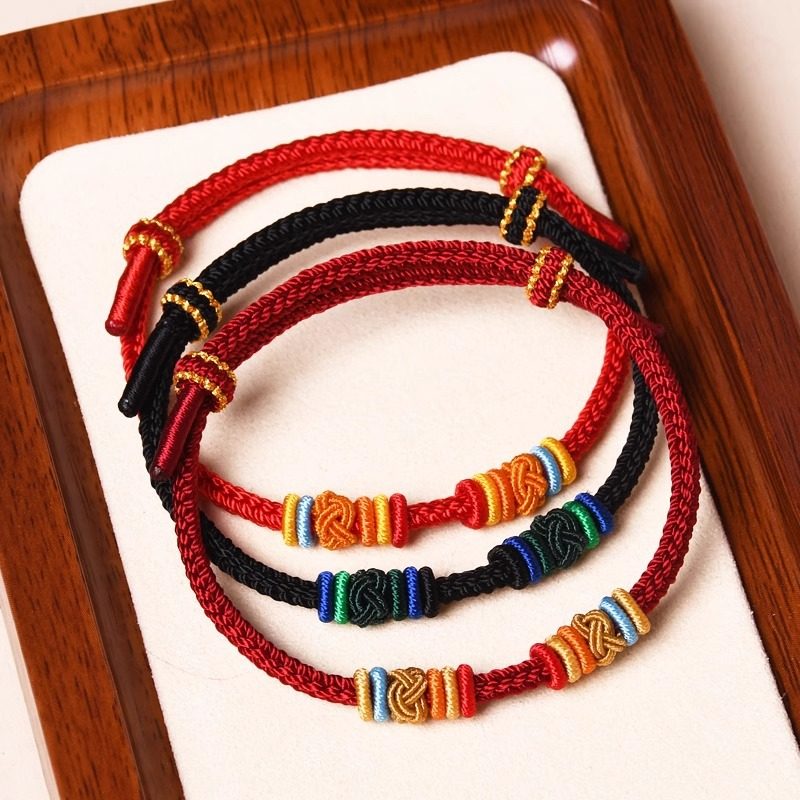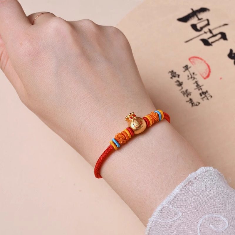 转运珠手绳可穿串黄金手工编织红色儿童宝宝八股绳DIY可拆卸