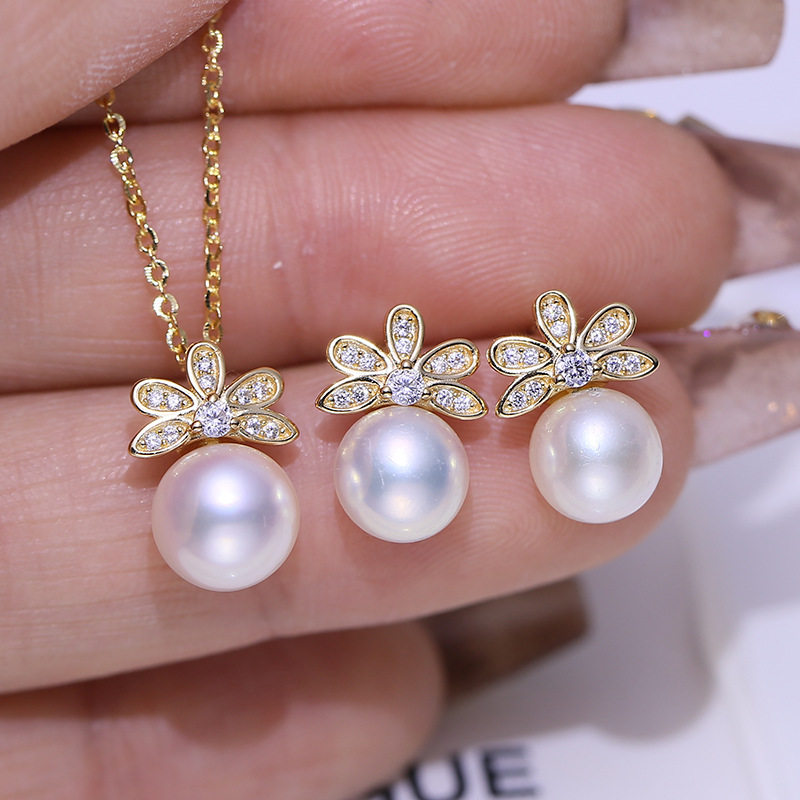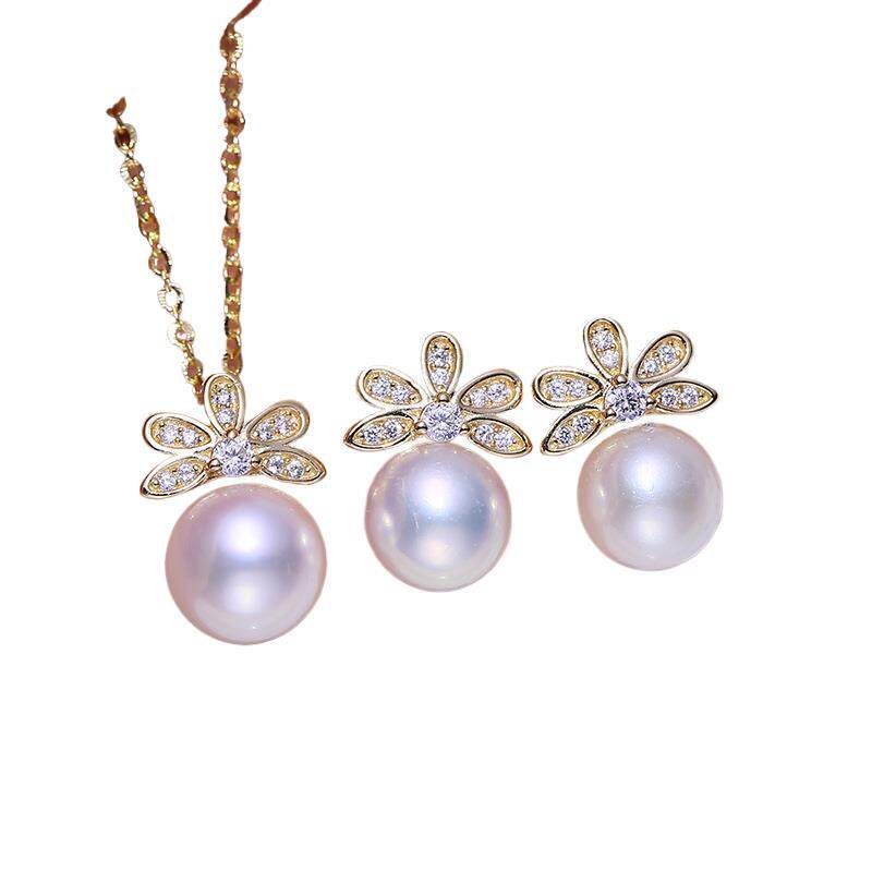 DIY配件 S925纯银耳钉吊坠套装空托小清新时尚耳环项坠银托半成品