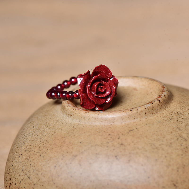 原矿朱砂本命年玫瑰花戒指男女情侣紫金砂平安百搭弹力石榴石指环