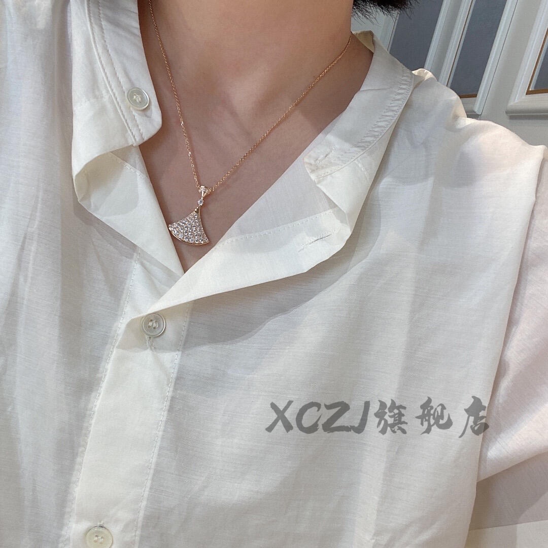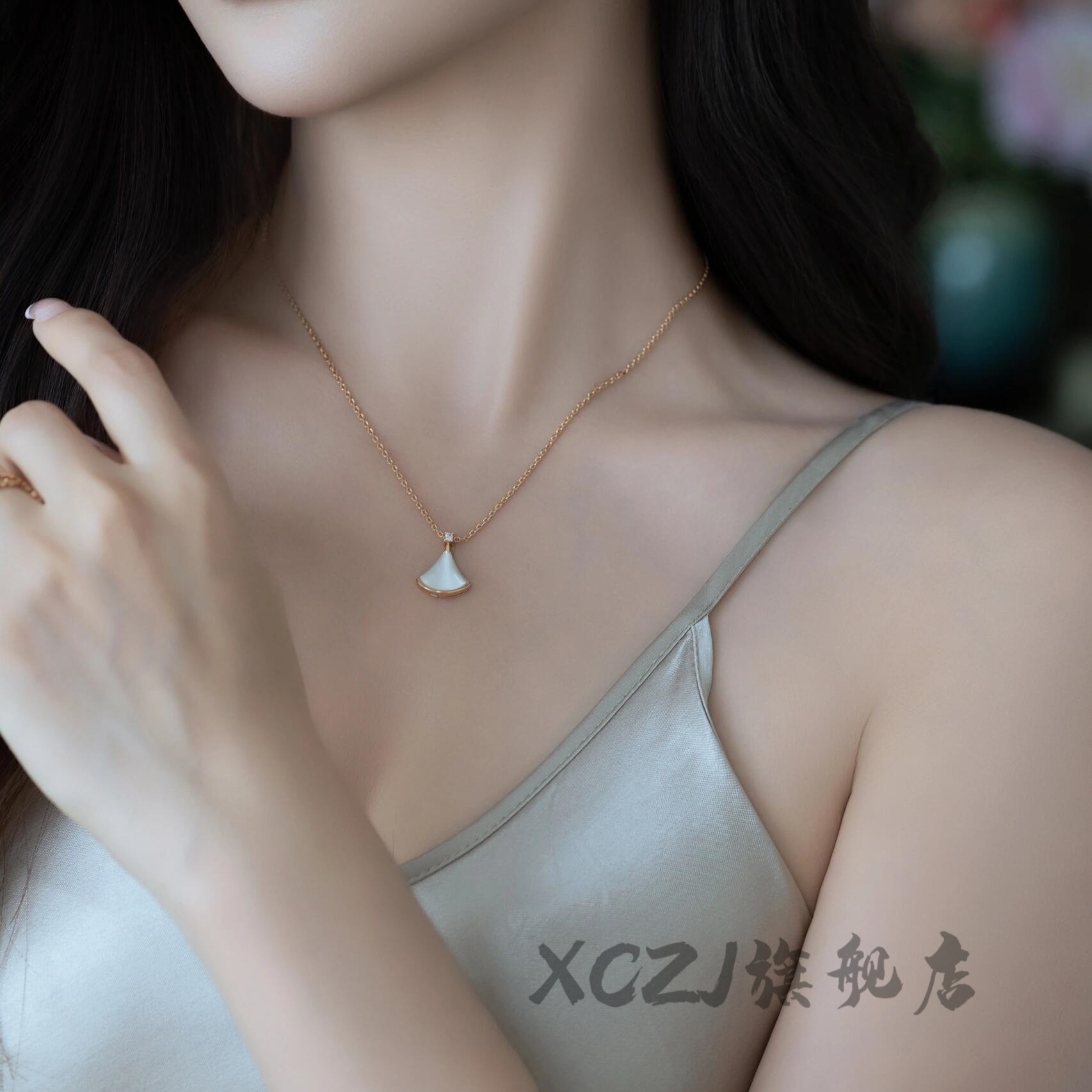 XCZJ白贝母小扇子项链18K金大号带钻小裙子锁骨链吊坠情人节礼物