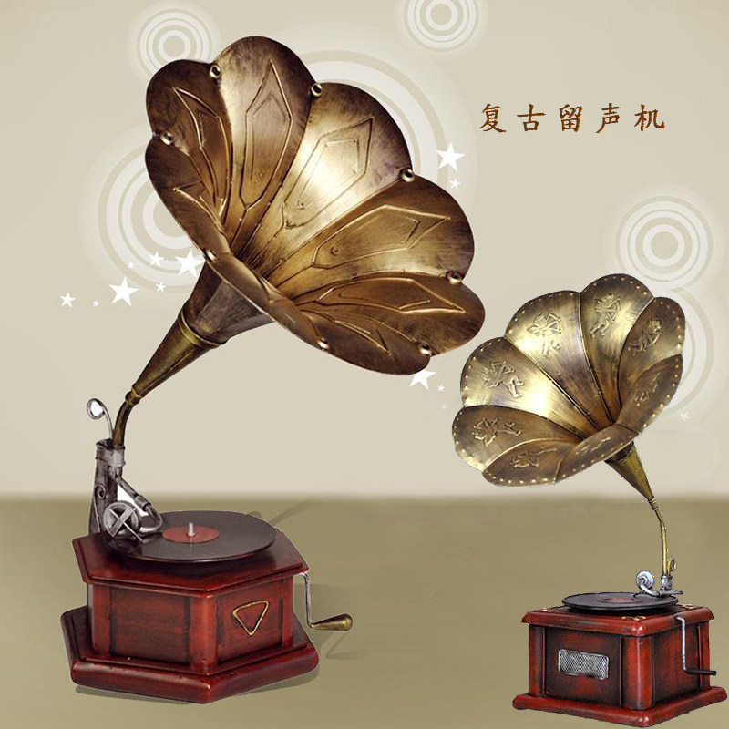 热销老式铁艺仿古复古唱片机 留声机 摄影道具 模型家居装饰品摆