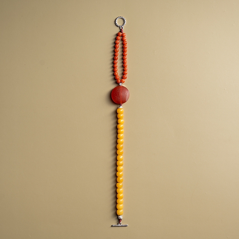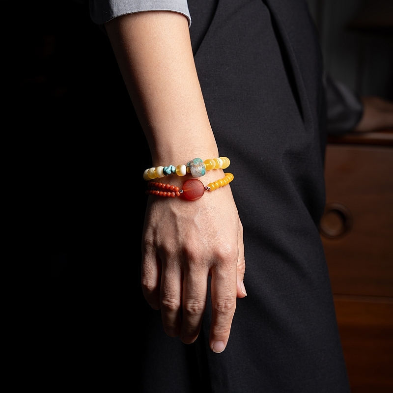 【孤品】卡杰格朵原创设计天然蜜蜡手链绿松石佛珠手串女一物一图