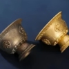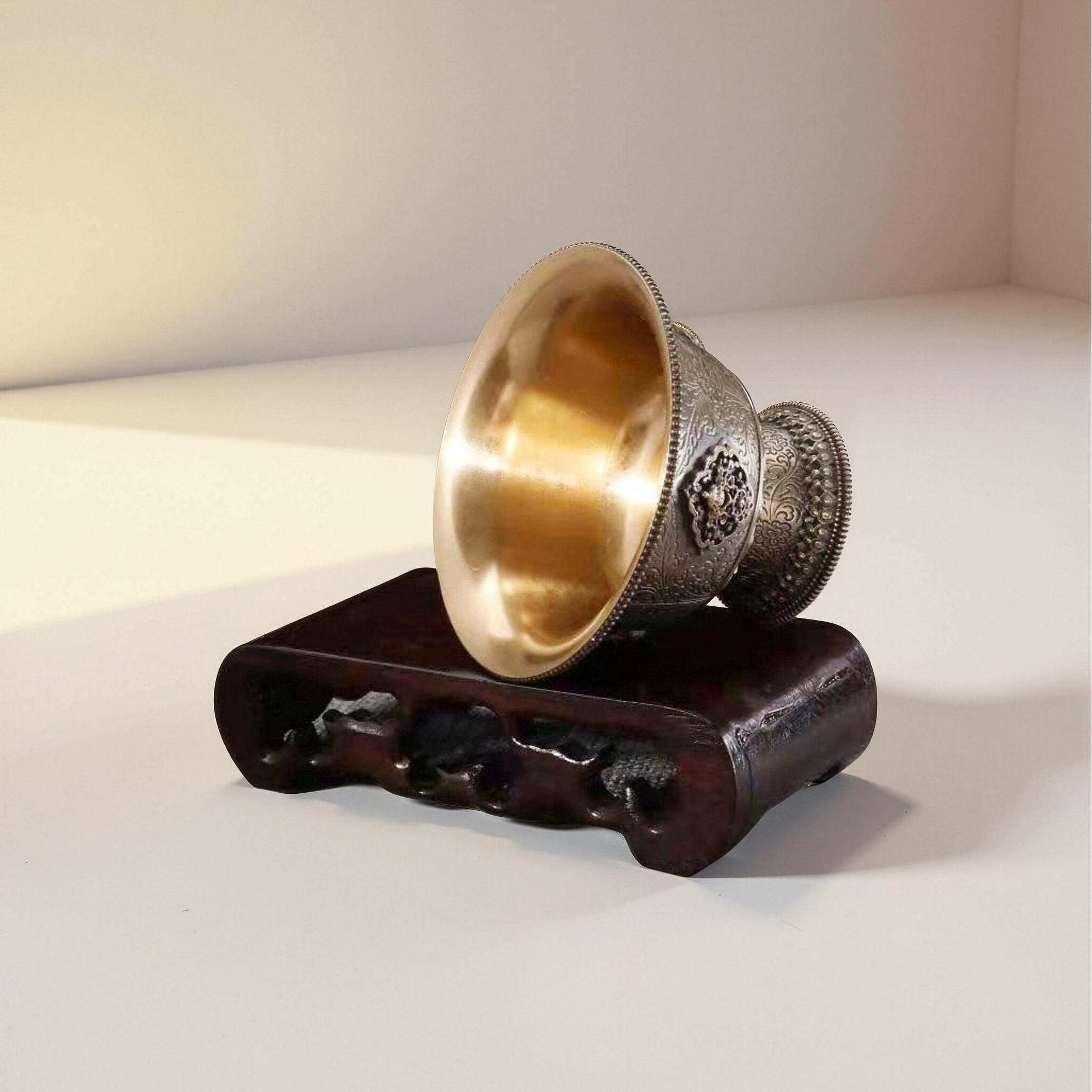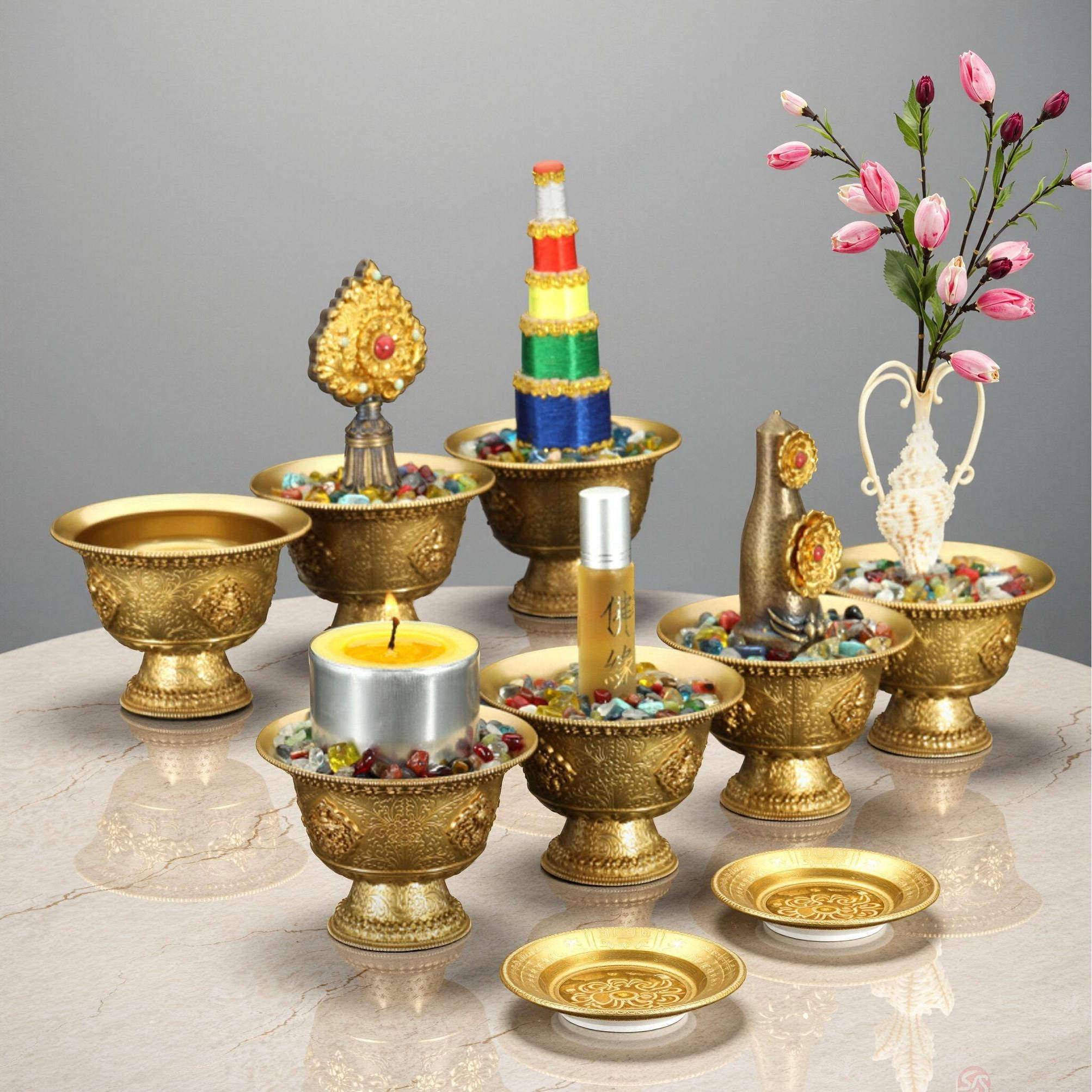 平底供水碗纯黄铜家用八吉祥民族高脚供水杯七供八供圣水杯供奉杯