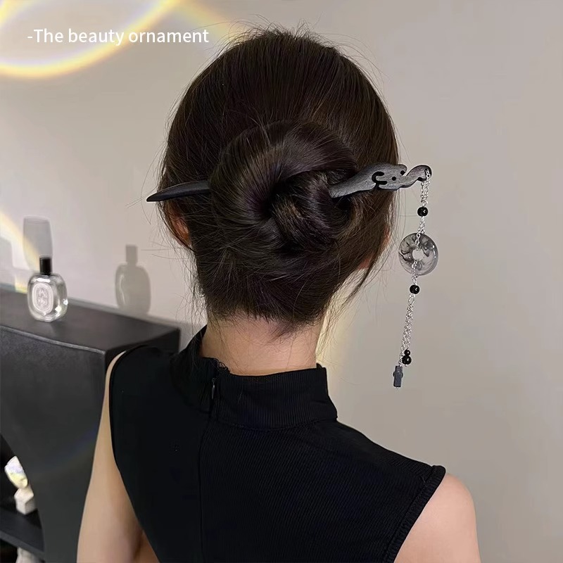 古风平安扣发簪流苏吊坠马面裙头饰女新中式旗袍挽发简约盘发钗子