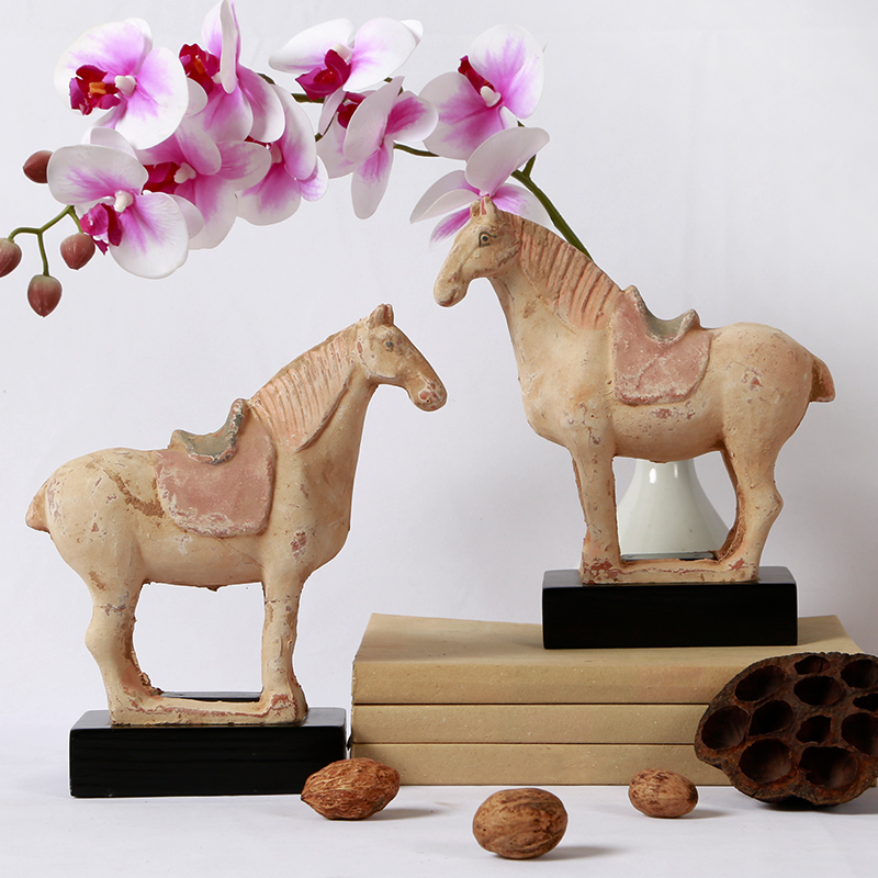 唐三彩陶马装饰品摆件创意家居摆设搭配复古手工办公室桌面陶土牛