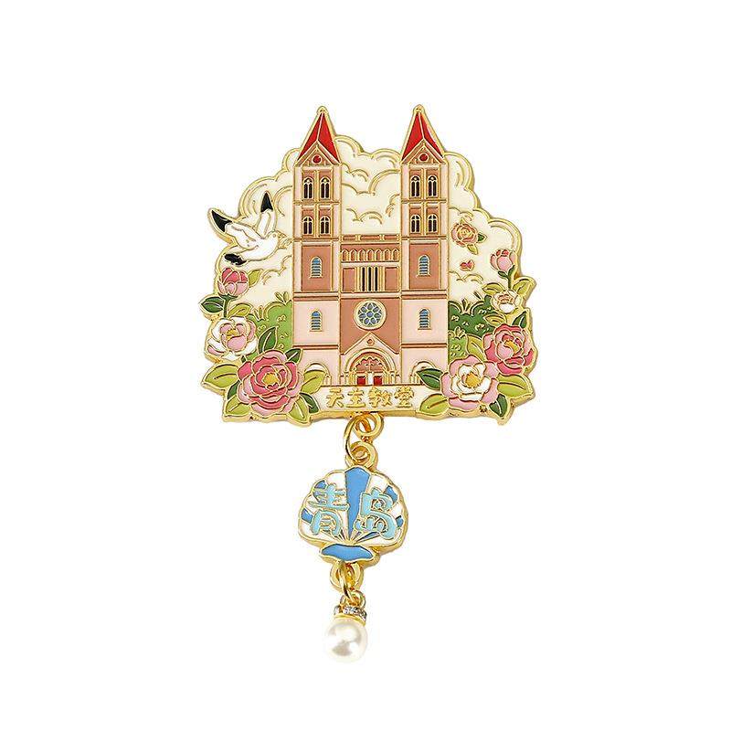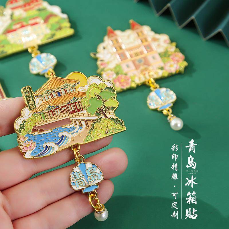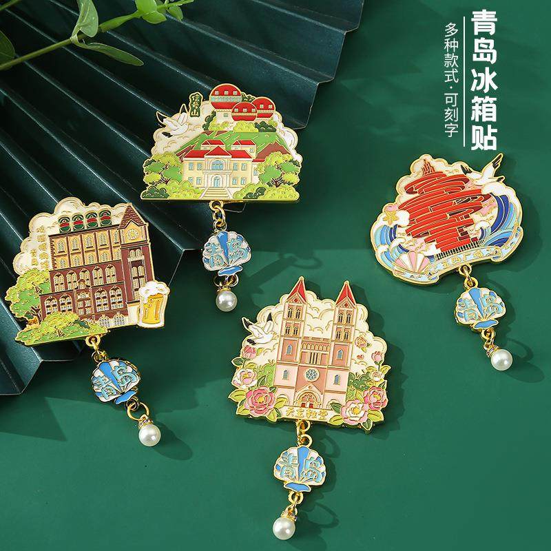 青岛五四广场回澜阁信号山啤酒博物馆文创金属磁吸冰箱贴磁贴礼品