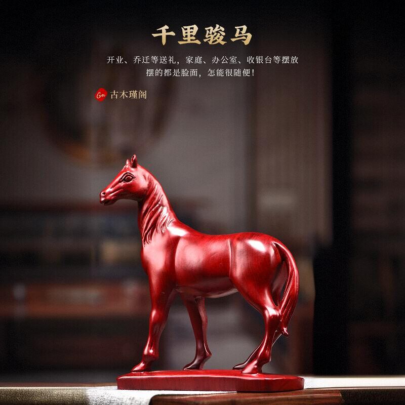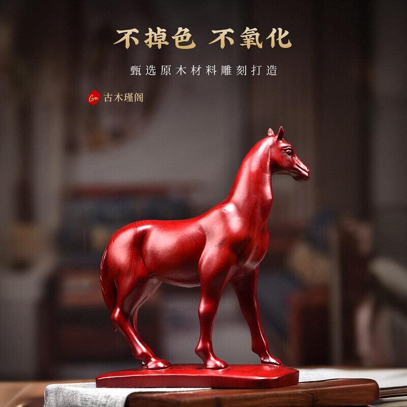 木雕马摆件马到成功生肖实木马摆件家居办公室客厅工艺品装饰摆件