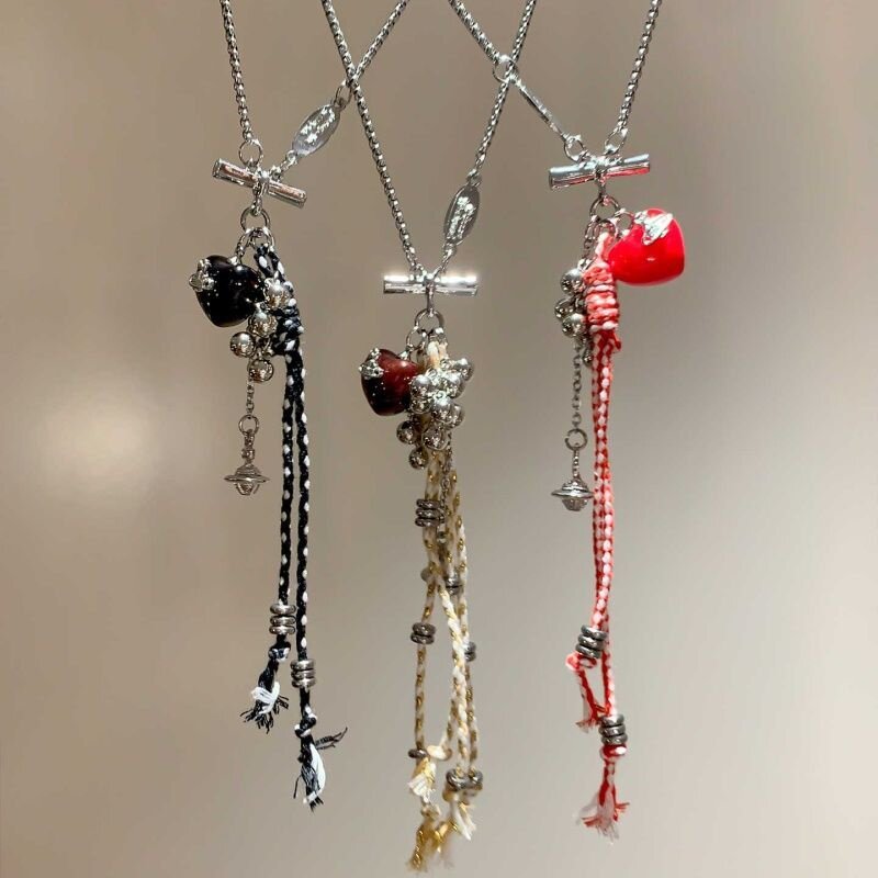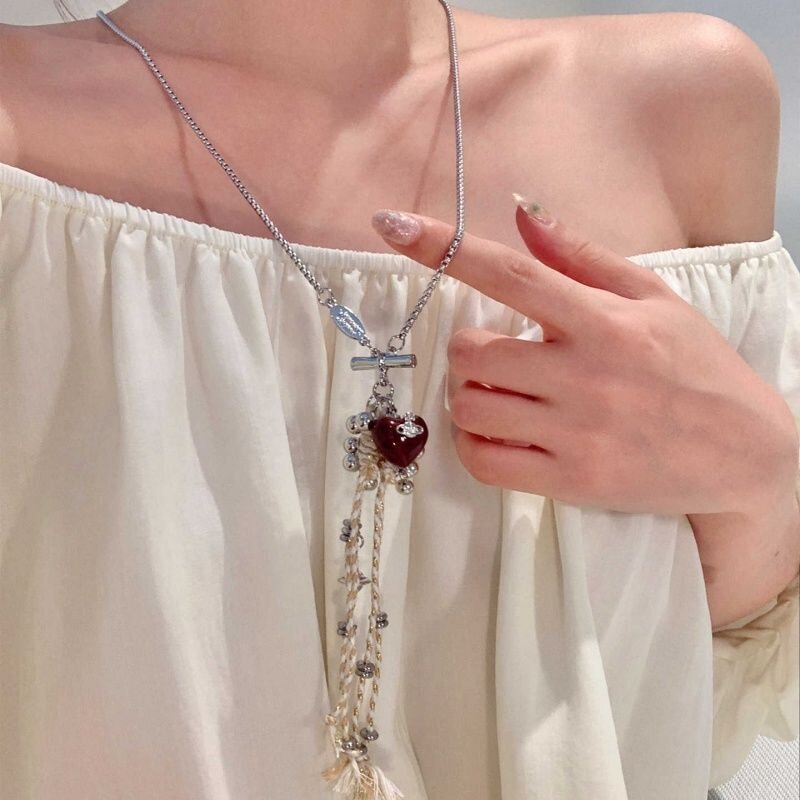 韩系彩色爱心长项链女轻奢高级感独特长款颈链配饰毛衣链红色黑色