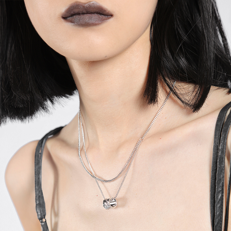 MIRII秘日 肌理简约圆环项链 厚银镀白金双层原创小众设计高级感
