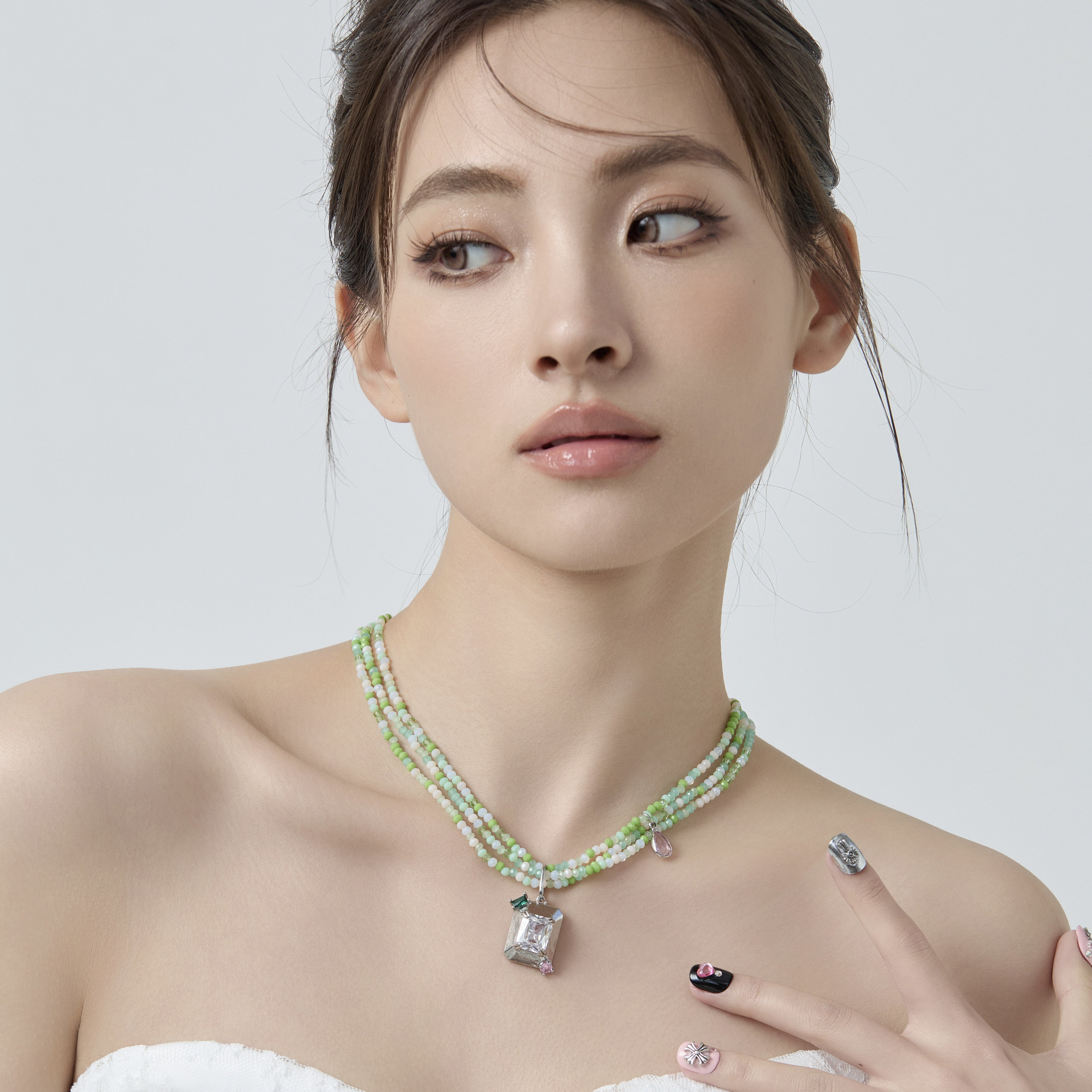 Starfire原创薄荷绿色系项链秋日多层串珠ins复古时尚百搭锁骨链