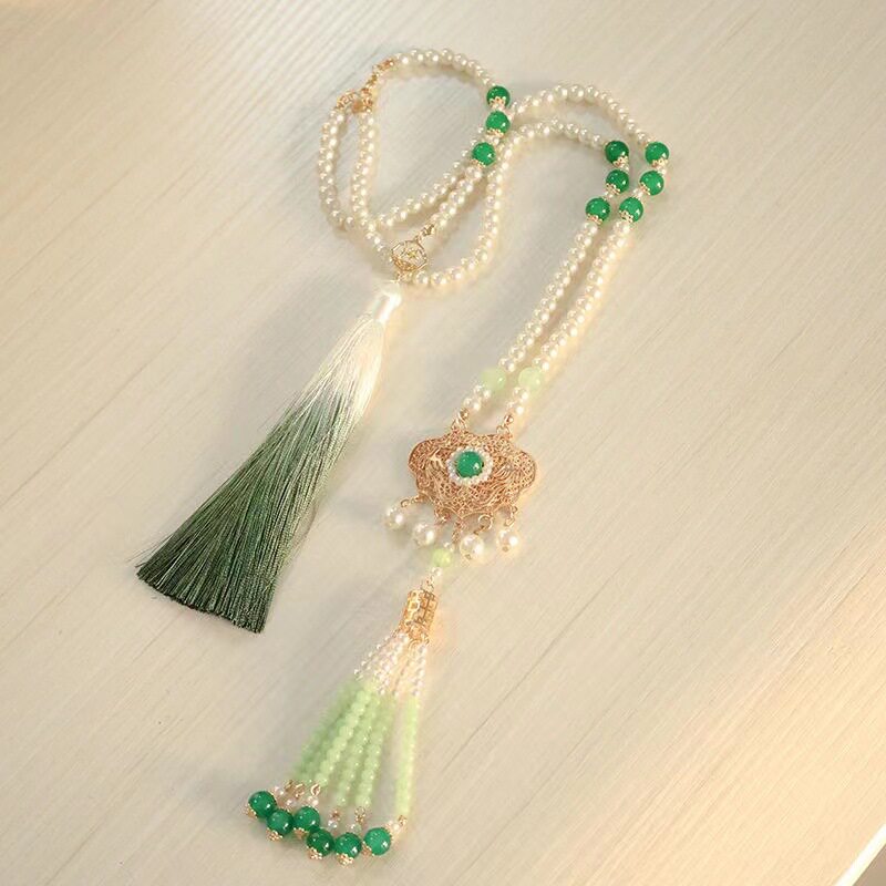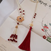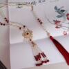 红色璎珞项链汉服古风平安锁仿珍珠长款流苏民族马面裙新年配饰品