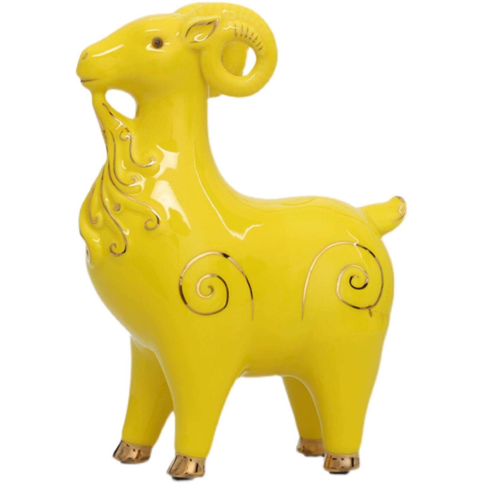 黄色陶瓷羊摆件风水招财12生肖山羊家居镇宅补角客厅办公室装饰品