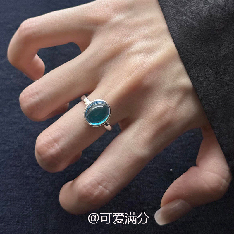 清冷感冰透蓝色蛋面戒指女百搭时尚气质指环小众设计高级感食指戒