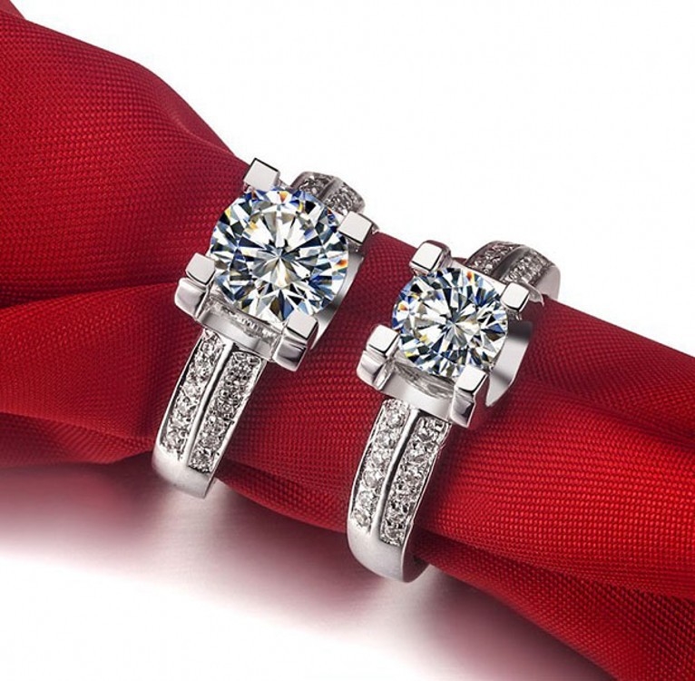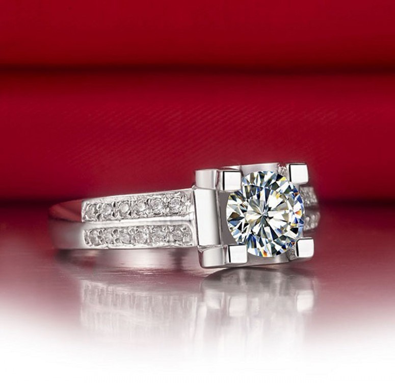 莫桑石双排牛头款钻戒女AU7501克拉戒指情侣对戒简约婚戒礼物包邮