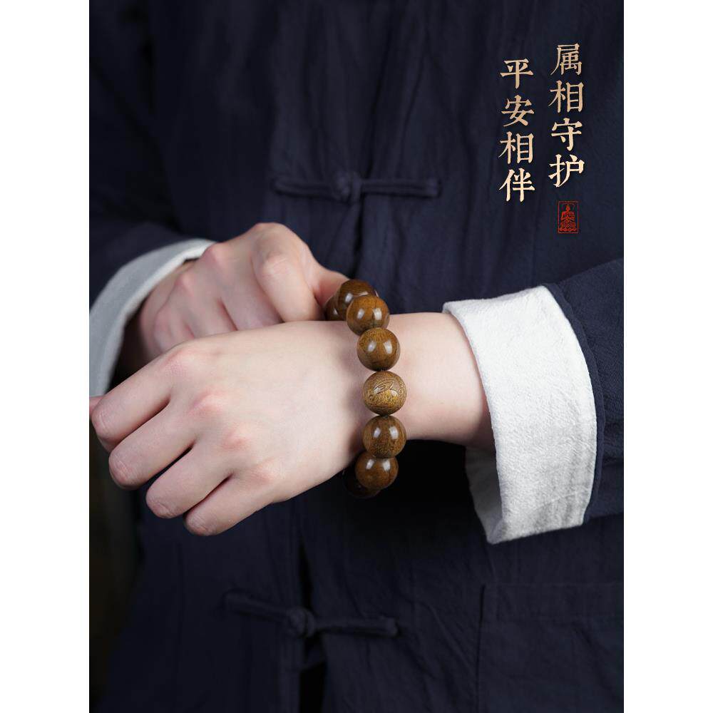 金丝楠木手串阴沉木老料乌木檀香木文玩本命年佛珠十二生肖手炼男