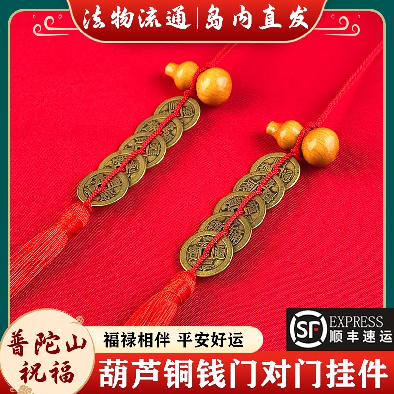 普陀山五帝钱门对门天然桃木葫芦铜钱串客厅大门口卧室压门槛挂件