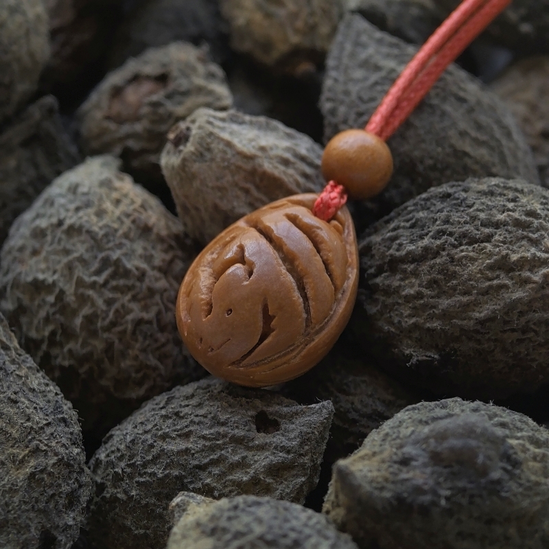 野生桃枭毛桃核雕刻吊坠挂件本命年红绳宝宝儿童孕妇走夜路随身