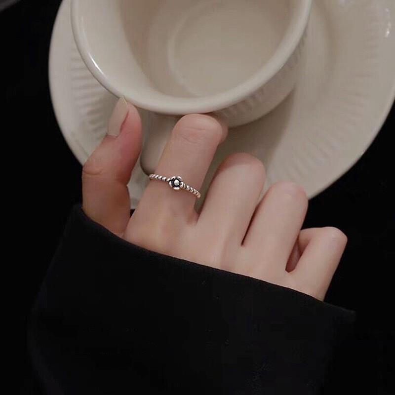 玫妃勿忘我复古花朵纯银戒指女个性轻奢小众设计食指开口调节指环