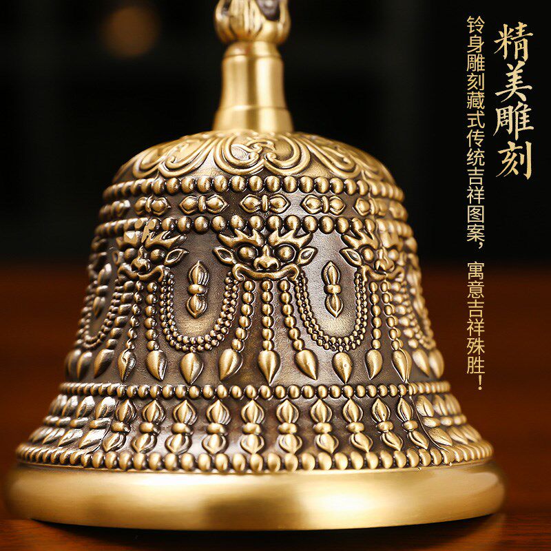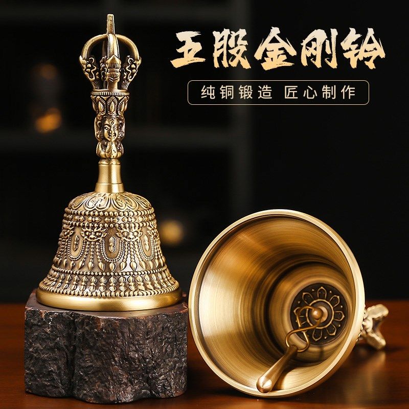 黄铜大号手摇铃铛五股金刚铃光滑加厚铜铃太极八卦仿古三叉铃摆件