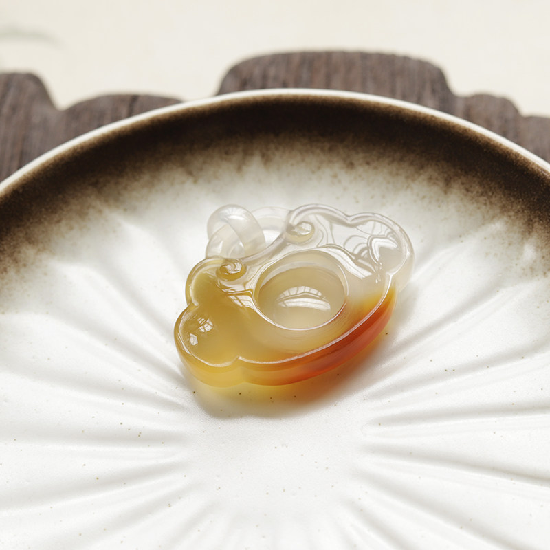 天然玉髓镂空如意锁吊坠红玛瑙转运珠平安复古宝宝锁玉石挂件项链