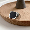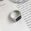 泰银复古韩版时尚方形黑色滴釉光面戒指INS风简约经典款指环