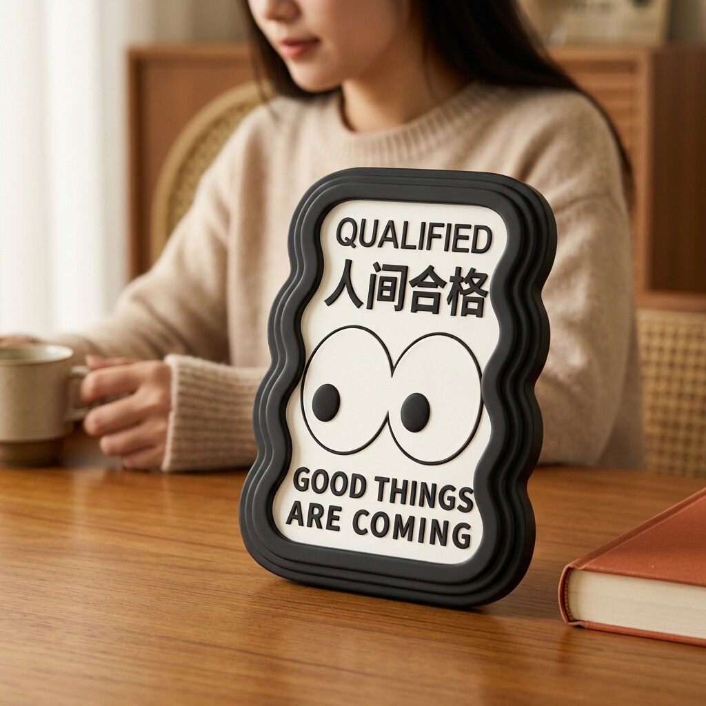 可爱卡通造型装饰摆件家居桌面创意文字装饰品黑白色调