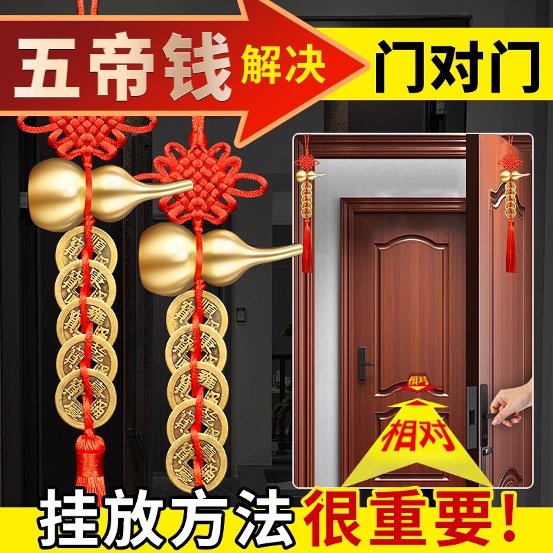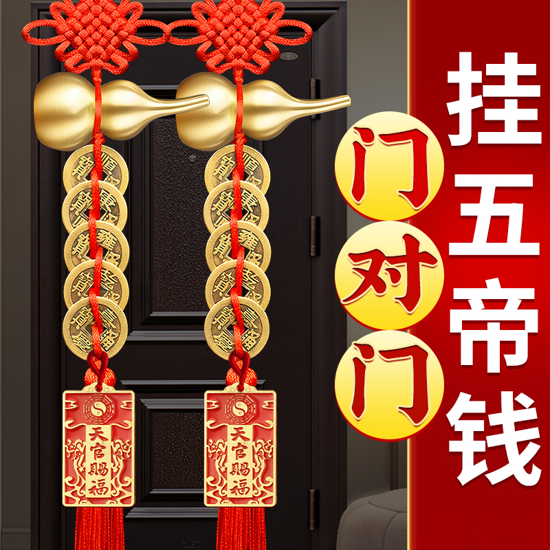 五帝钱葫芦挂件门对门全铜真品铜钱串解入户对大门天官赐福对电梯