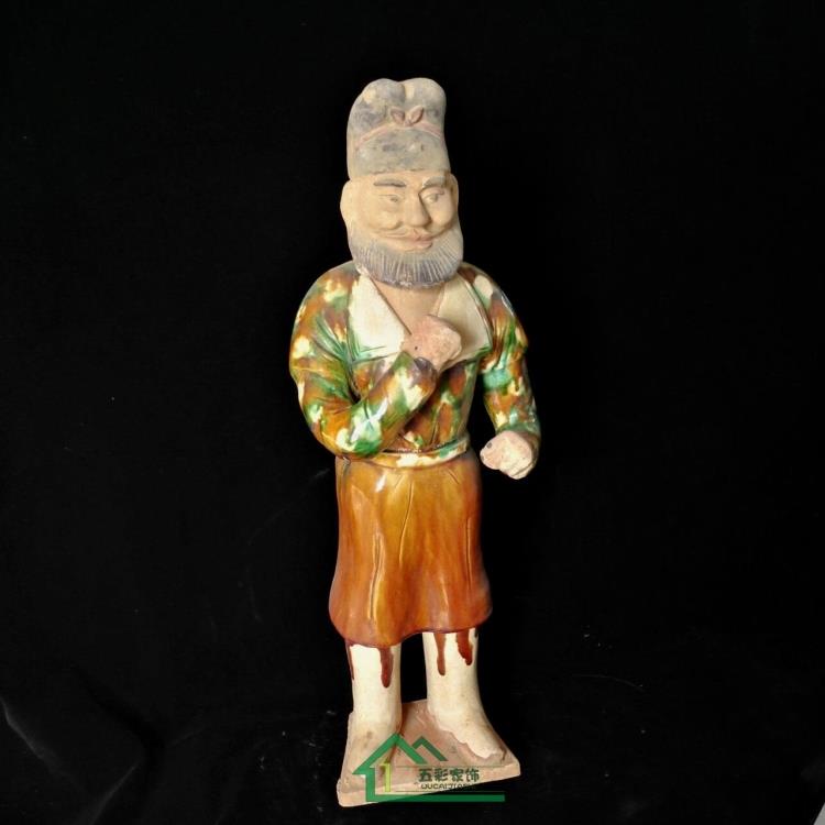 陶俑 唐三彩胡俑 文玩复制品摆件 纯手工人物 中式宾馆酒店饰品