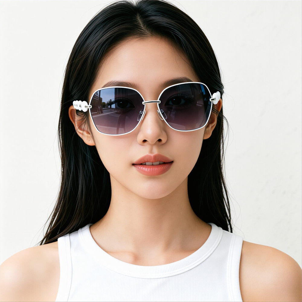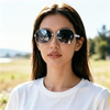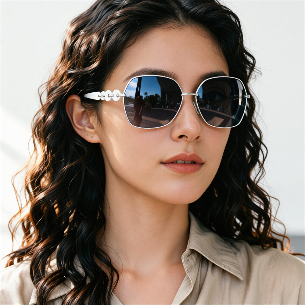 白色女士太阳镜多边时尚墨镜女款旅游防紫外线拍照白框个性眼镜