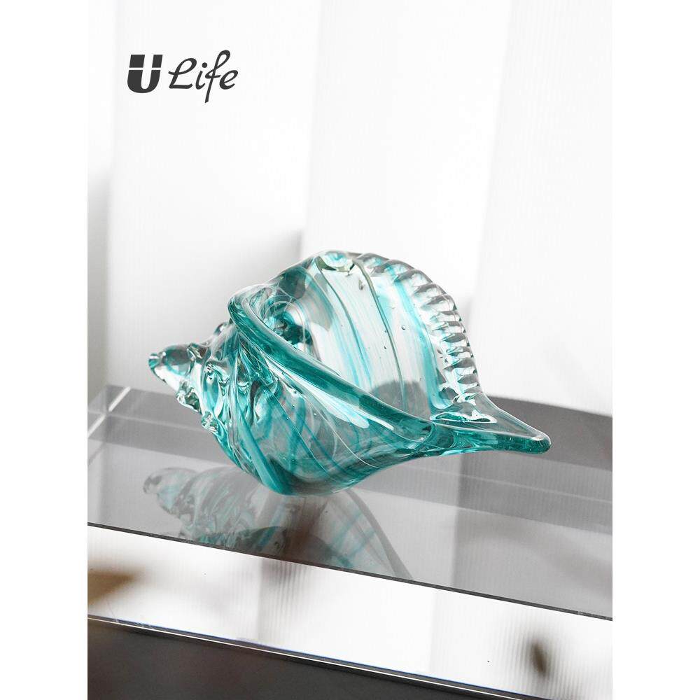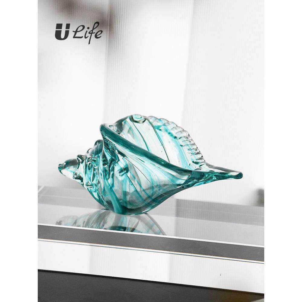 蓝色海螺琉璃摆件简约现代客厅酒店办公室玄关酒柜送礼轻奢装饰品