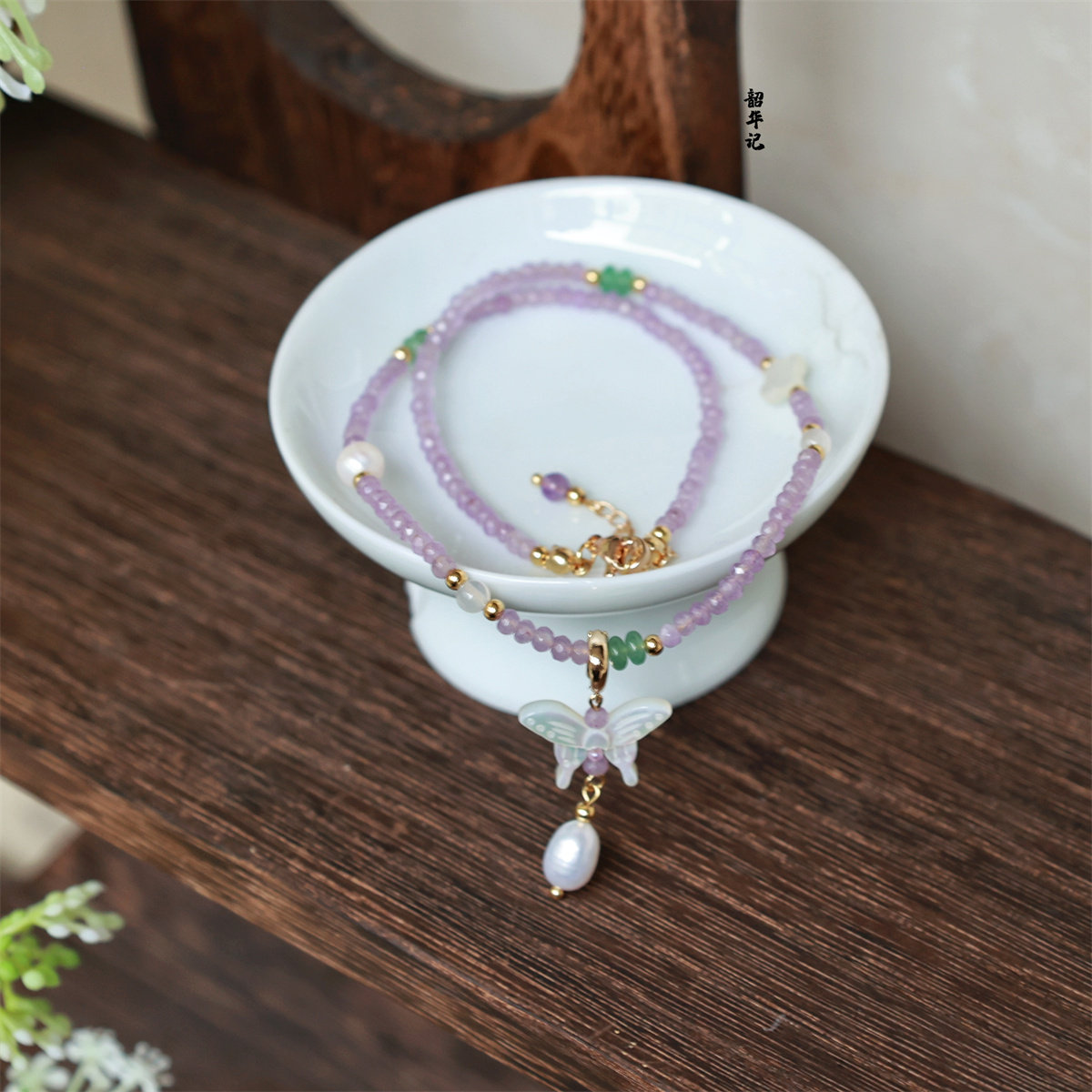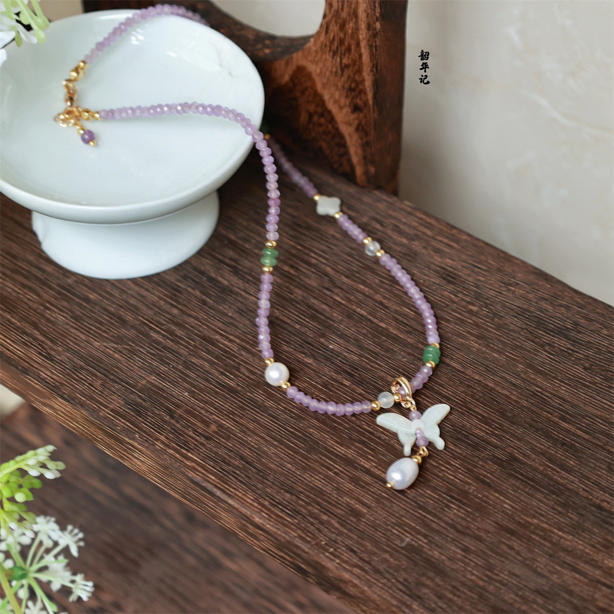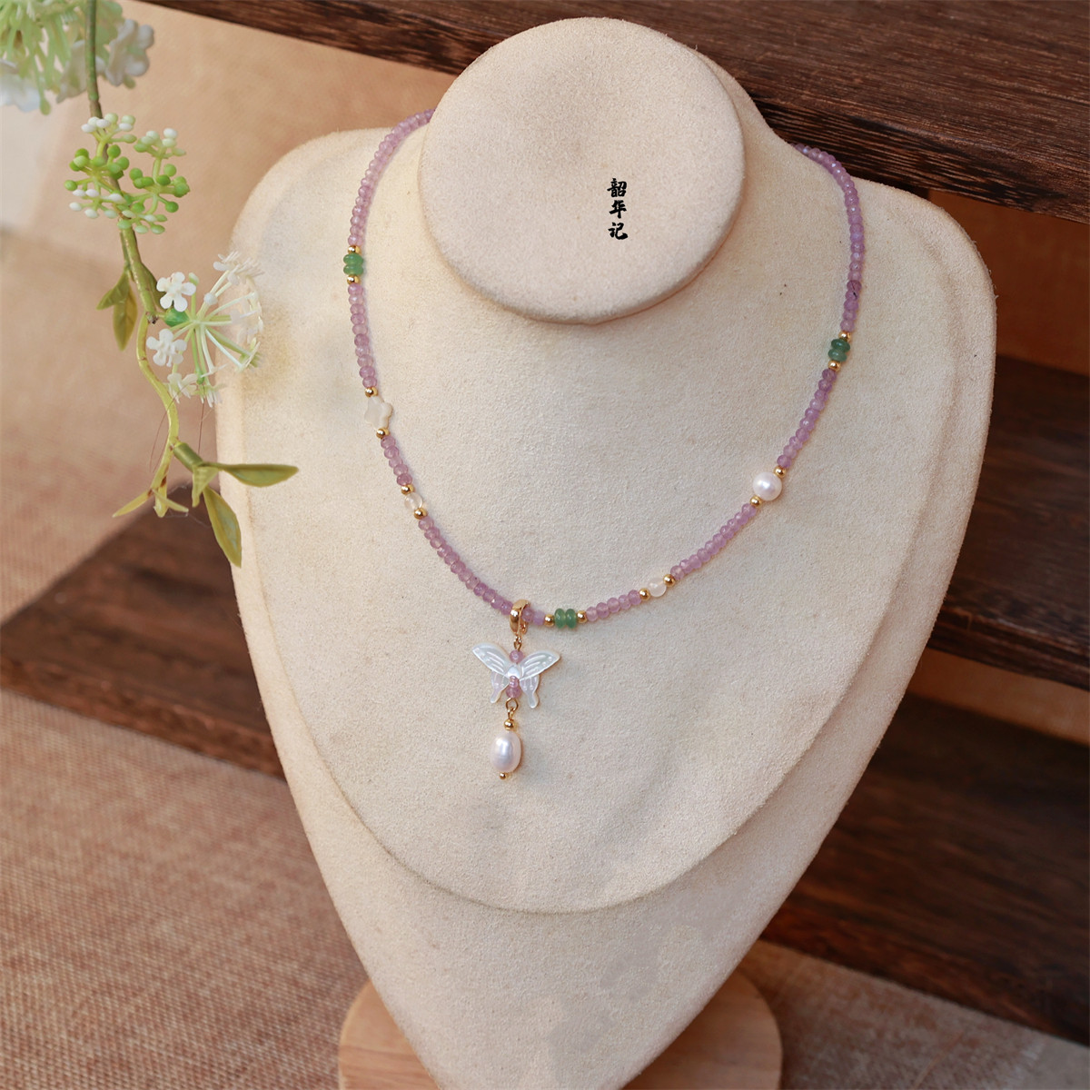 韶华记 暮意 汉服玉石贝母珍珠蝴蝶两用日常简约温柔古风璎珞项链