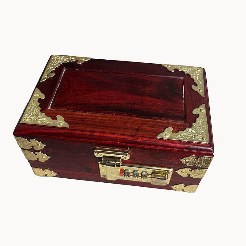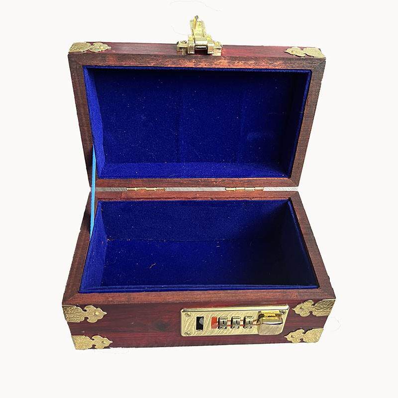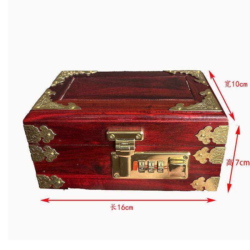木制酸枝色密码首饰盒收纳盒子蓝色绒布内衬