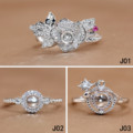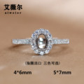 精工莫桑钻戒托925银镀18k金戒指死扣固定口空托50分1/2/3克拉
