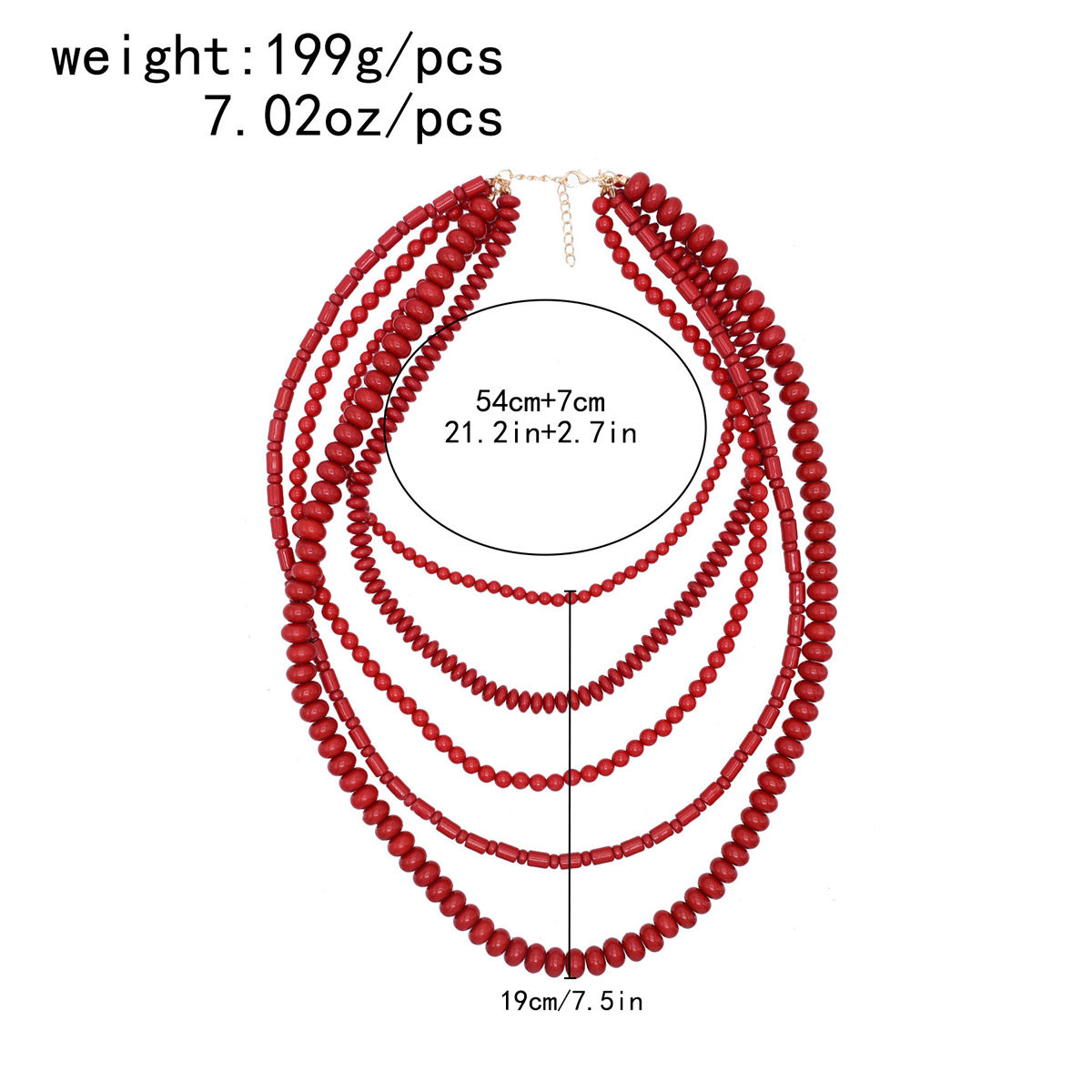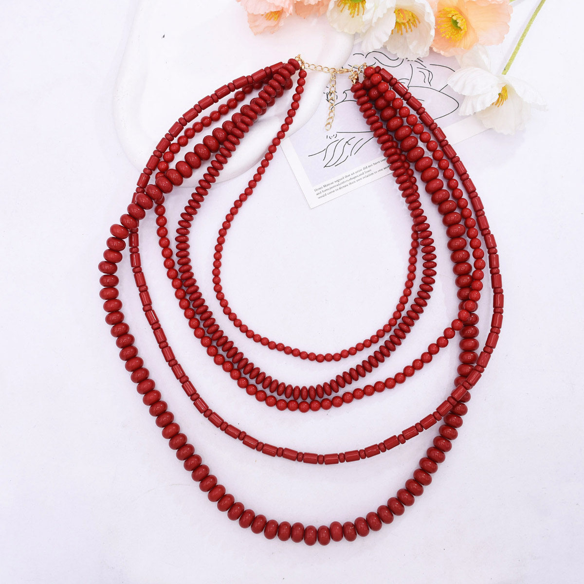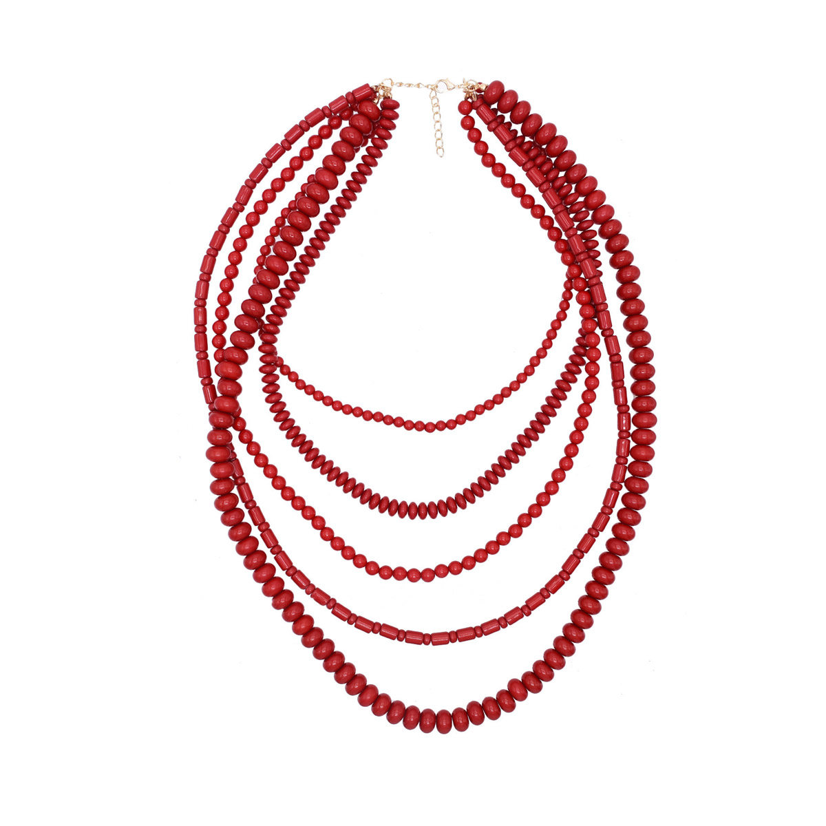 新款多层女式叠戴项链复古民族风长款红色串珠毛衣链夸张饰品配饰